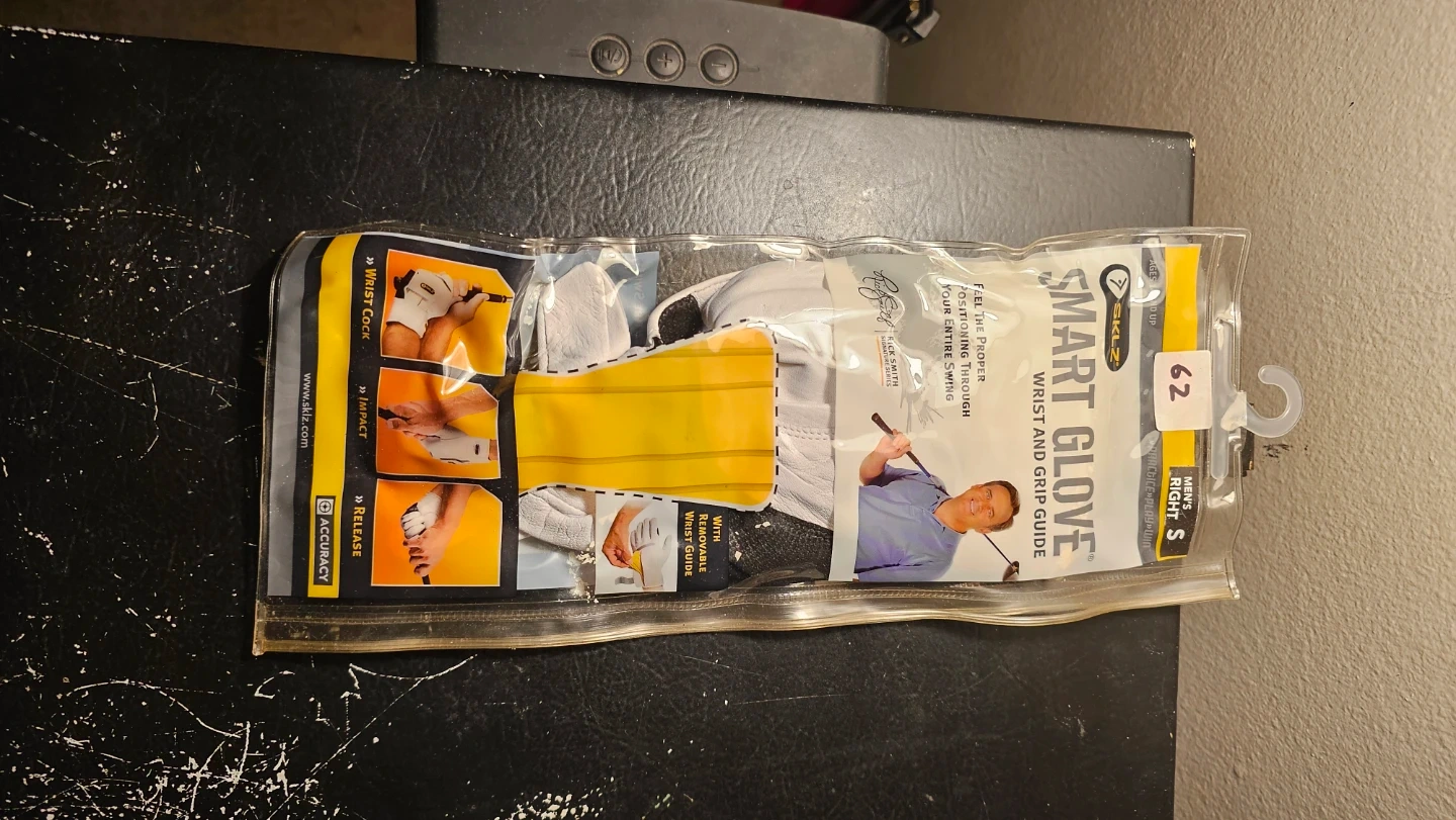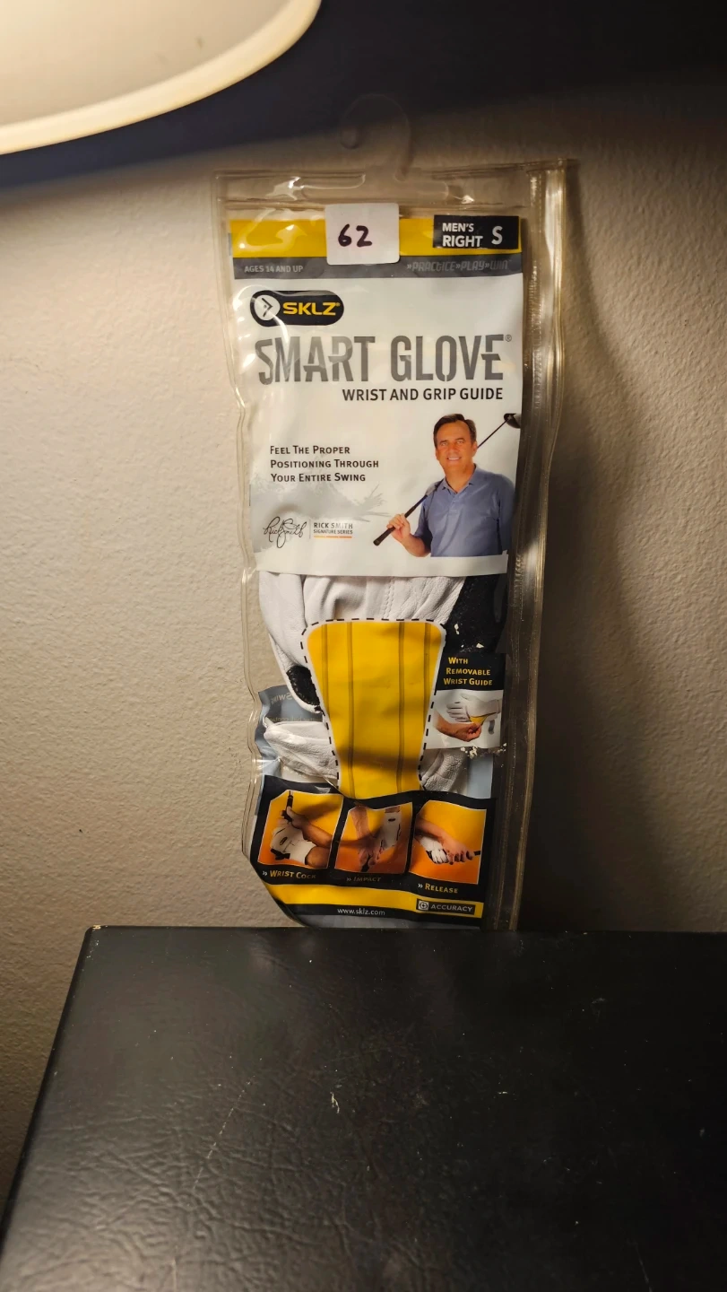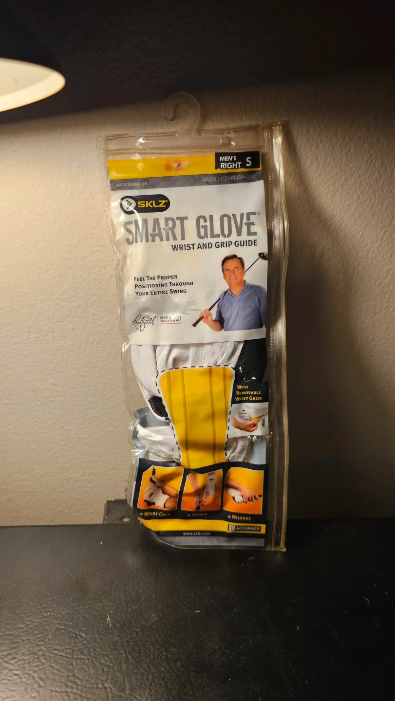 Selling a new SKLZ Smart Glove is designed to help you feel the proper positioning throughout your entire swing. It includes an integrated black grip guide for practice and can be used for both practice and play. Specialized palm design outlines proper grip points.