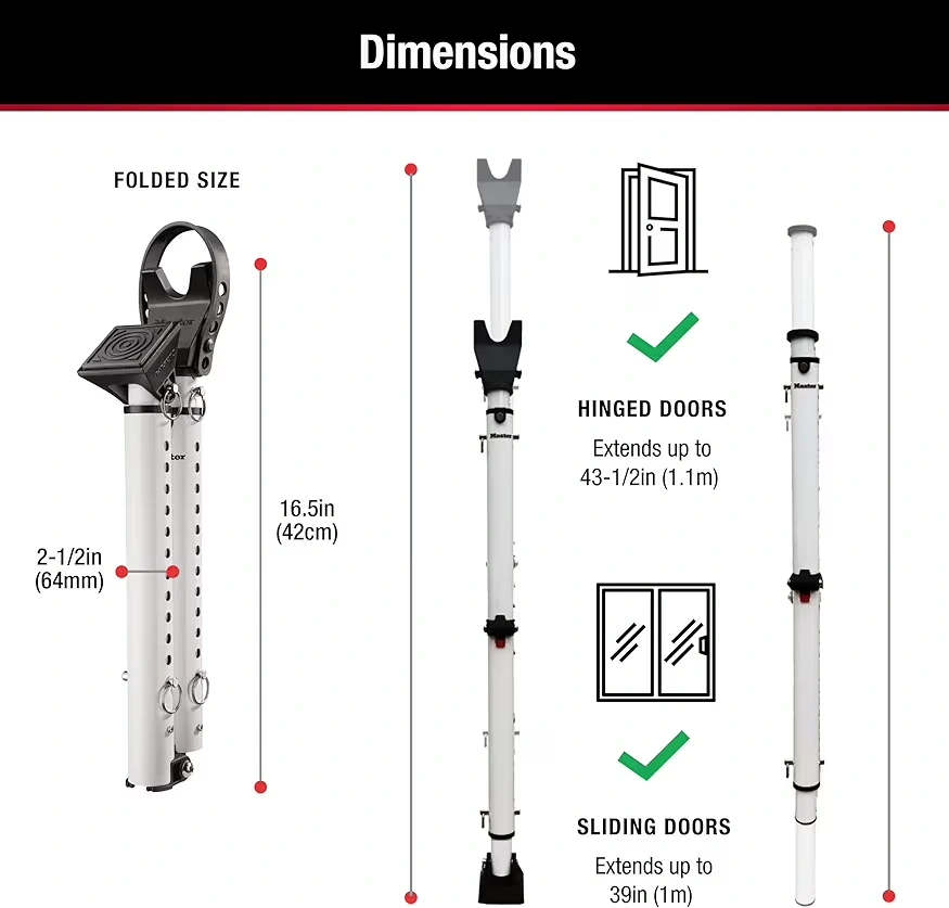 Master Lock Compact Door Stopper Security Bar, Adjustable for Hinged and Sliding Doors, 270EC. Adjusts up to 43-1/2 in. (1.1 m)