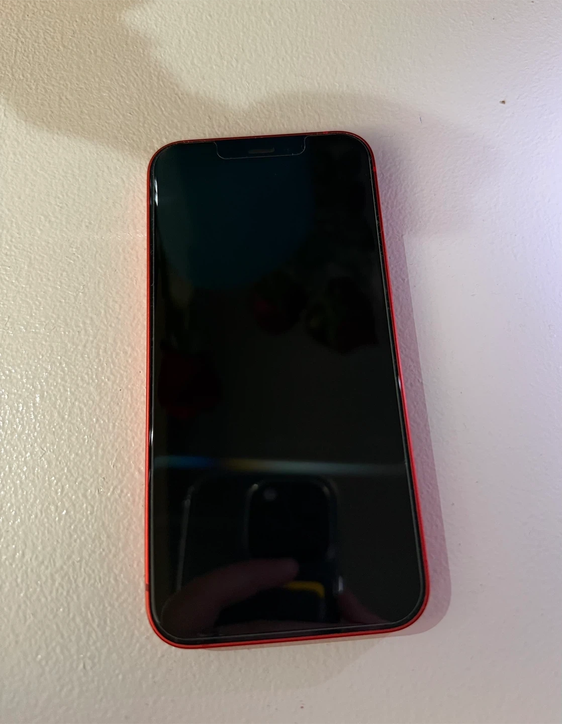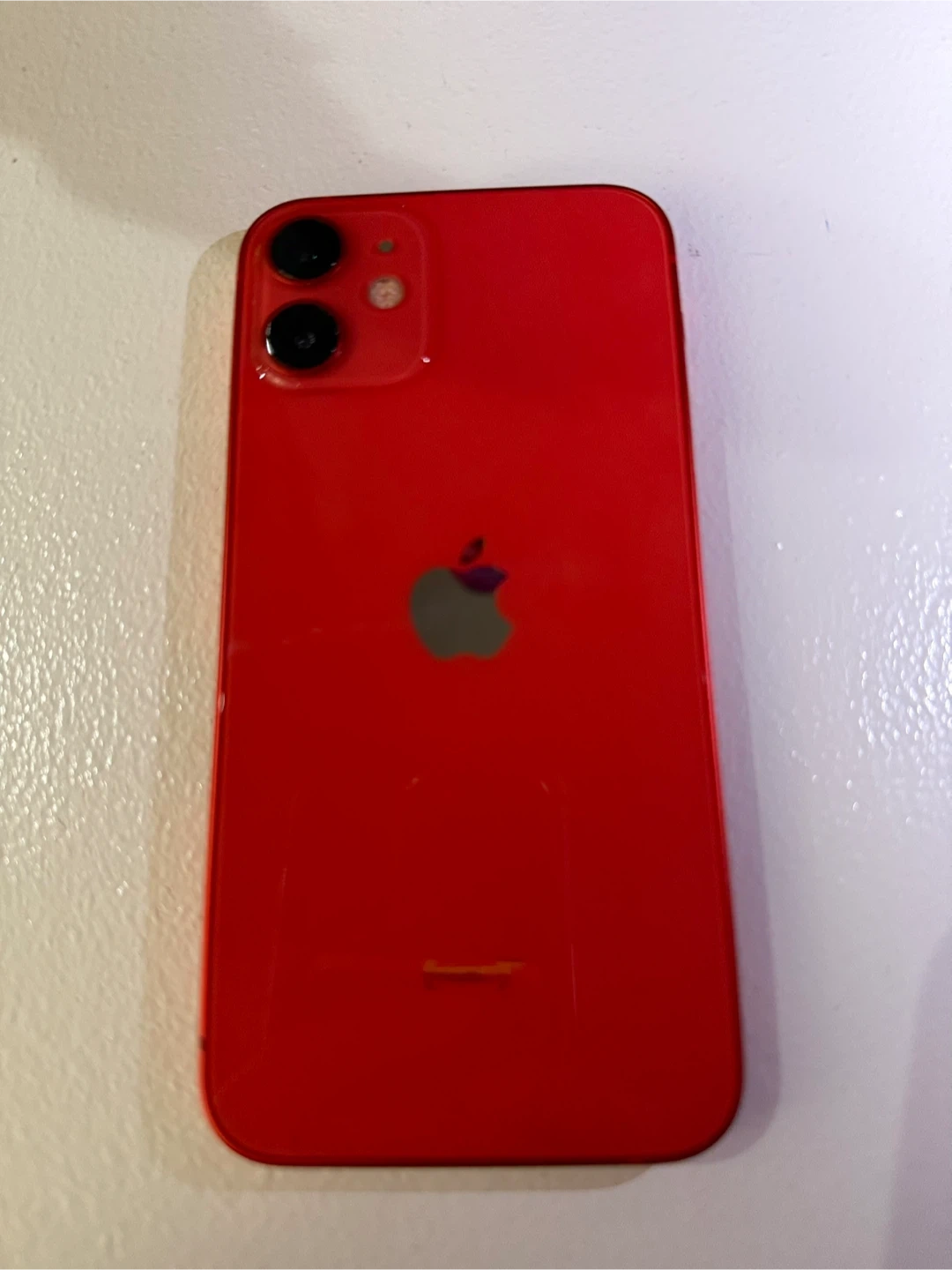 This is a red Apple iPhone 12 mini. It comes with a clear protective case and screen protector. This phone is in good working condition.