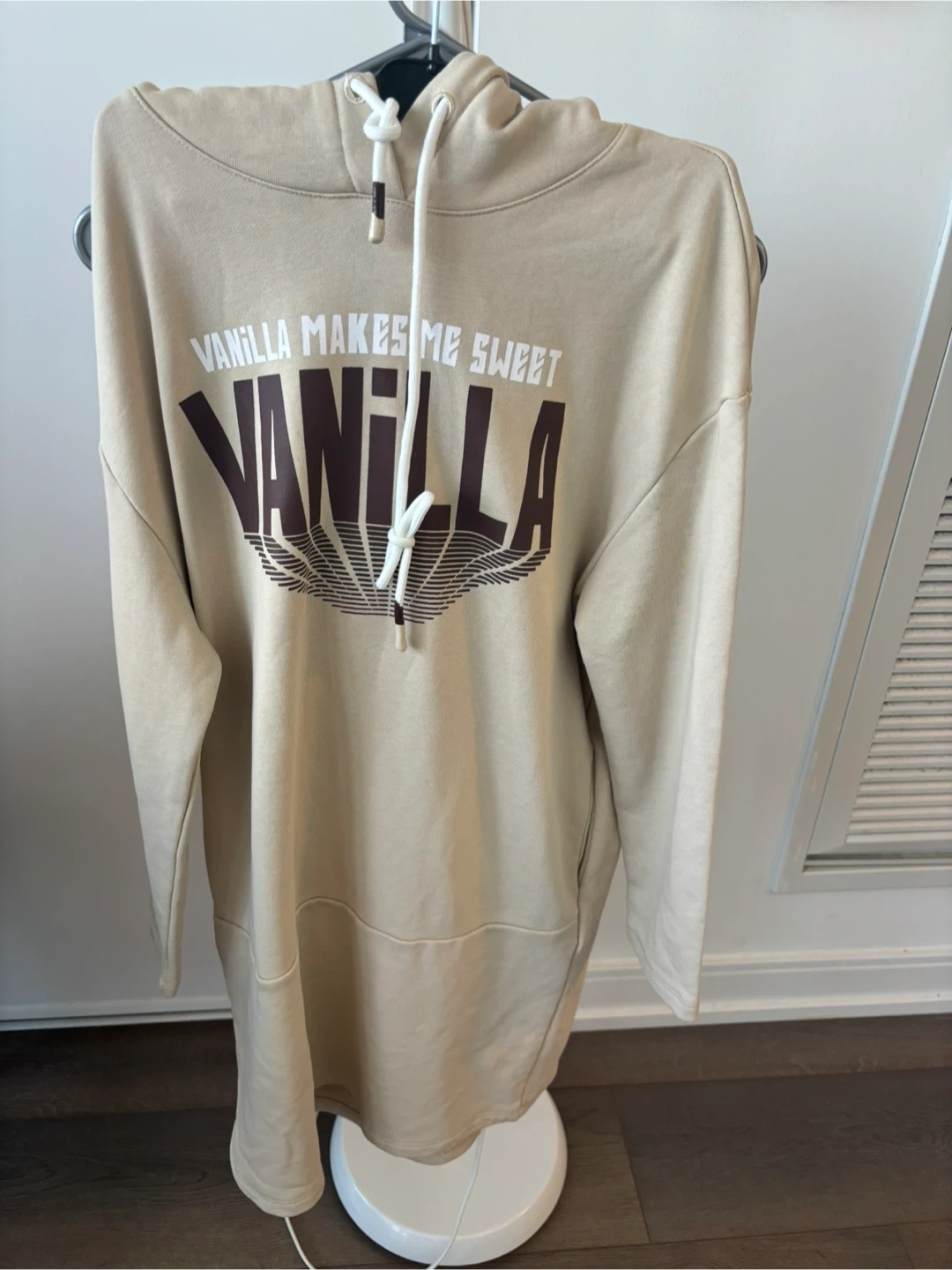 Buy & SellHoodie DressHoodie Dress$10A cozy beige hoodie dress with a "Vanilla Makes Me Sweet" graphic. It's a comfortable, casual piece perfect for everyday wear.WHERE TO MEETCheck LocationView MapSELLERkarenWellesley Station100 reviews3 chats·3 favorites·41 viewsSEND CHAT TO SELLERHi karen! I’m interested in your listing.Hi karen! I’m interested in your listing.Get the Karrot app to chatSign In to chat