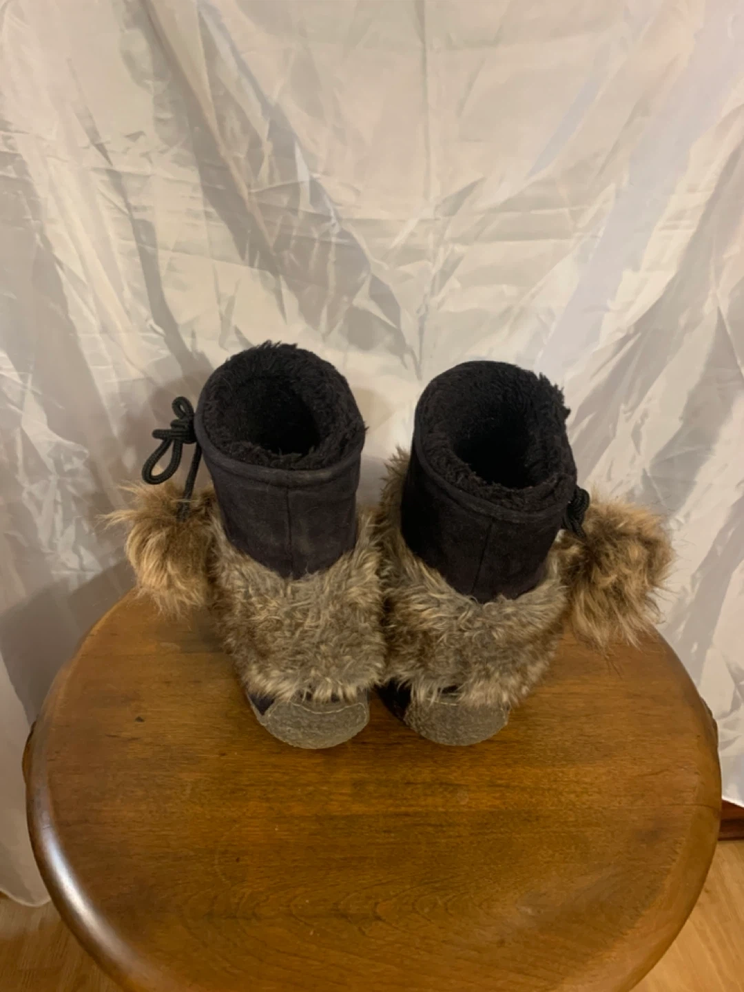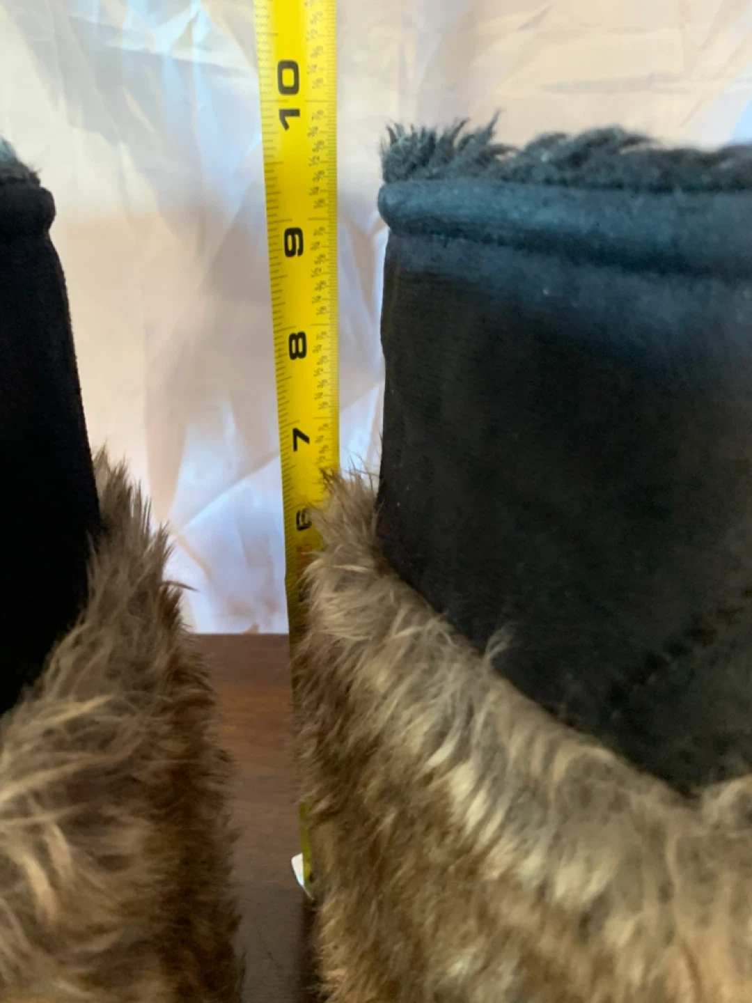 BLACK MUKLUKS LADIES SIZE 8, Aprox. 9 1/2” high. In very good used condition . Asking $50. I do not know the brand. I bought these and they are a bit too small for me.