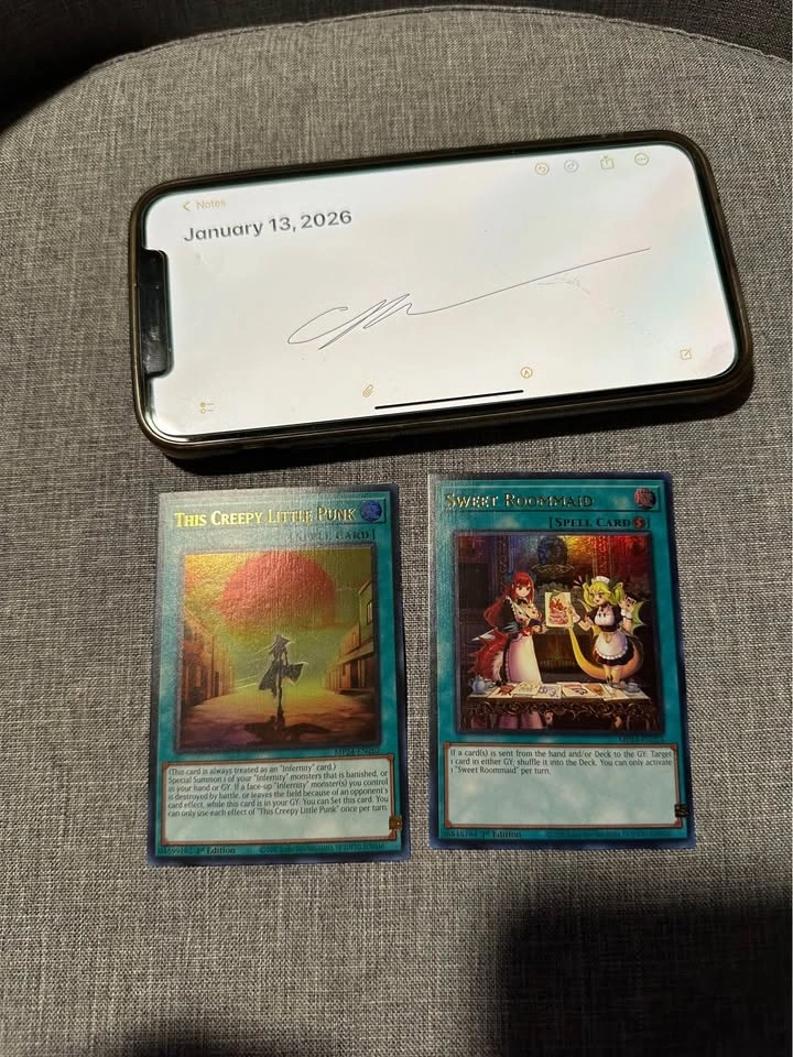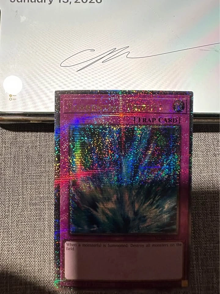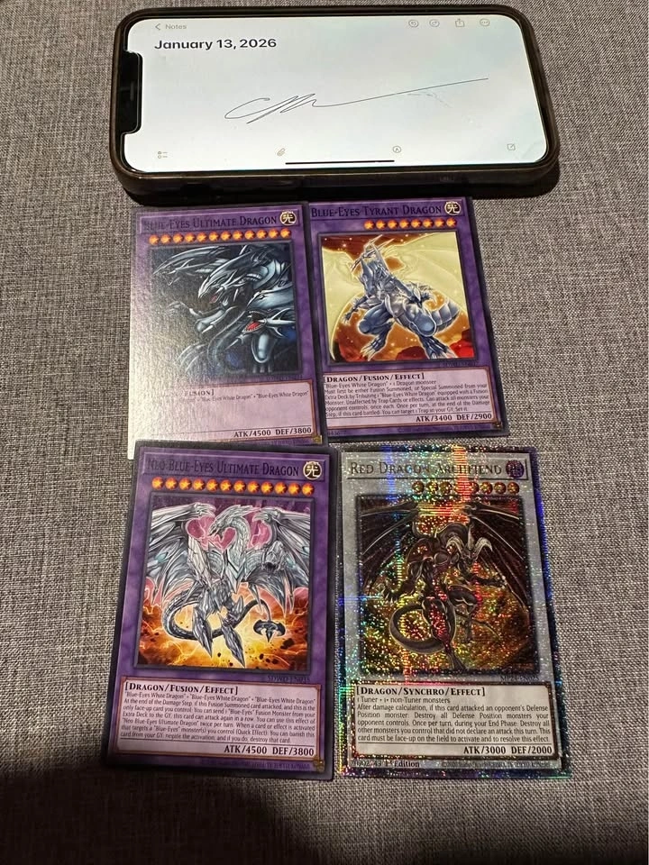 Selling some of my misprints, want to get some things for my kids. Only some of them in this listing, check my other one. Seven tools of Bandit - missing letters and pressing at end of name. Splash mage, black metal dragon, Number 11 big eye - name shifts. Torrential tribute QCR - minor name shift (bottom of box). Rare with name shifts. Creepy little punk and sweet roommaids - Anubis stamp shift. Blue eyes sdwd and Red Dragon Archfiend QCR with partial Anubis stamps.
