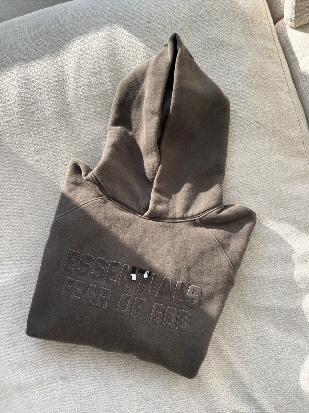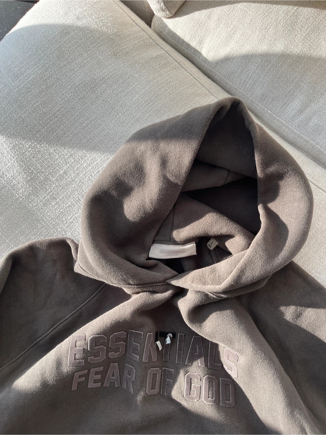 Selling a gently used Essentials Fear of God hoodie. It's in great condition and has the logo embroidered on the front. Price reflect the minor wear and tear on the lettering even though all of it can be peeled to reveal black text for consistently. Perfect for staying super cozy and warm!