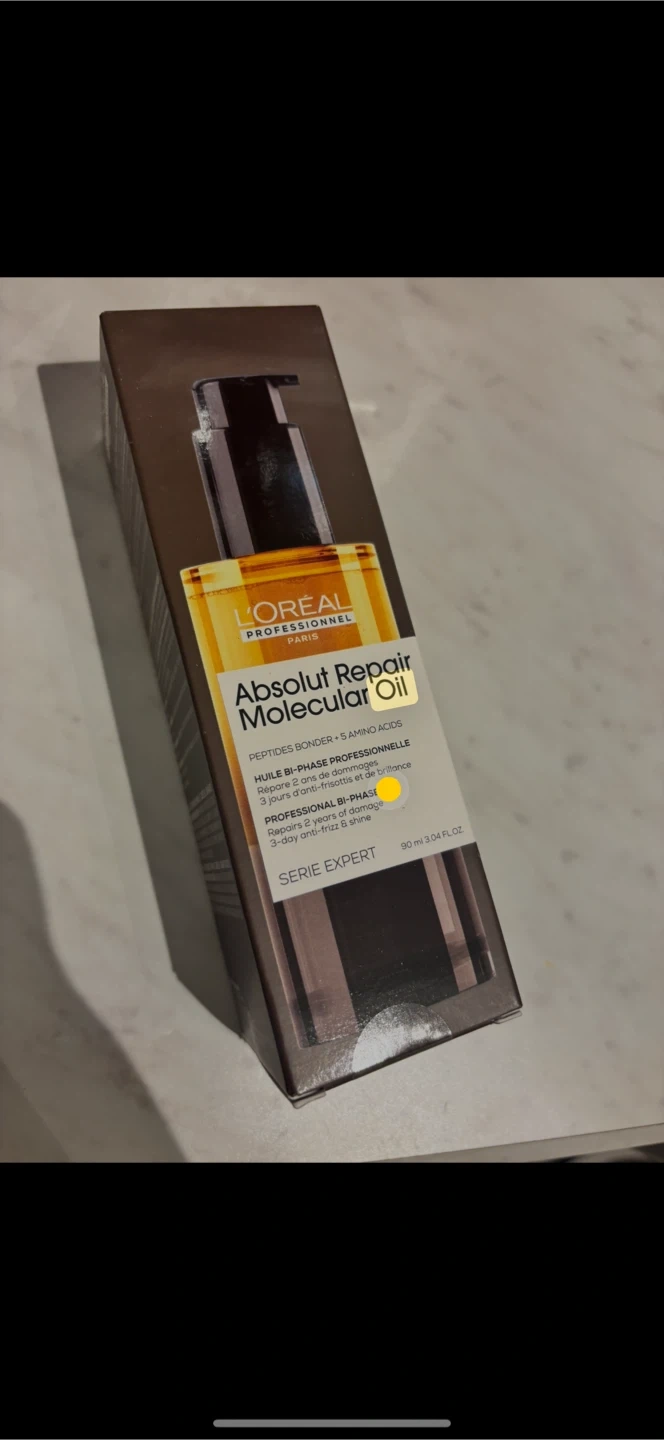 L'Oréal Professionnel Absolut Repair Molecular Oil in a 90ml size. This hair oil is designed for damaged hair. It helps to repair hair and add shine.