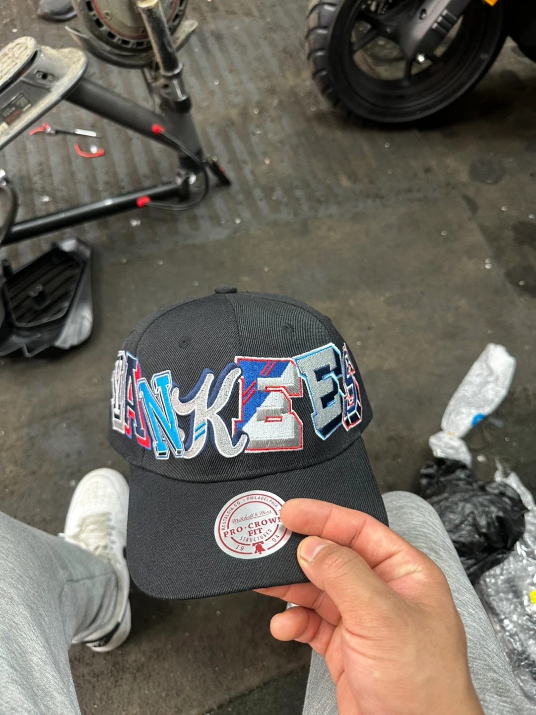 Mitchell & Ness MLB Hyper Type Pro Snapback hat in black. OSFA size. Features the Yankees logo across the front.