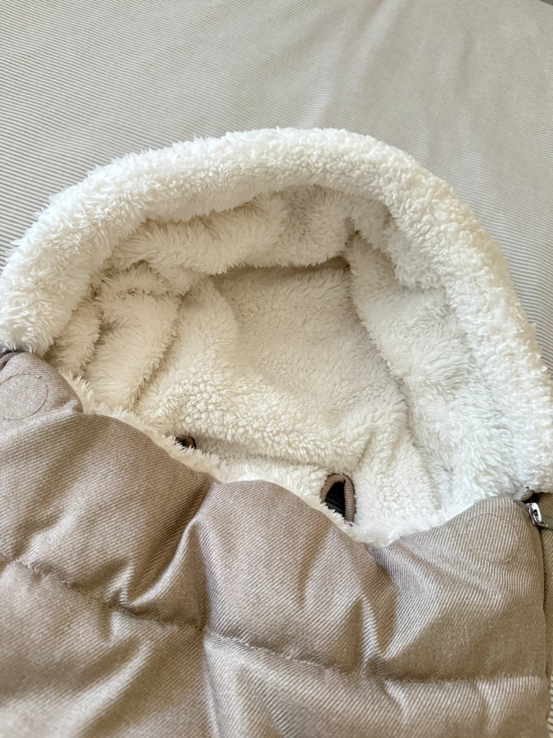 The ultra-plush CozyGanoosh footmuff provides ultimate coverage to keep your child toasty warm in inclement weather.