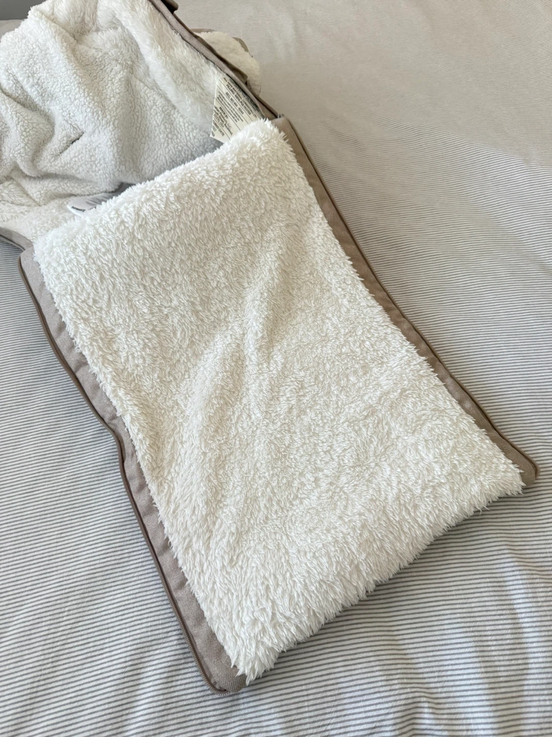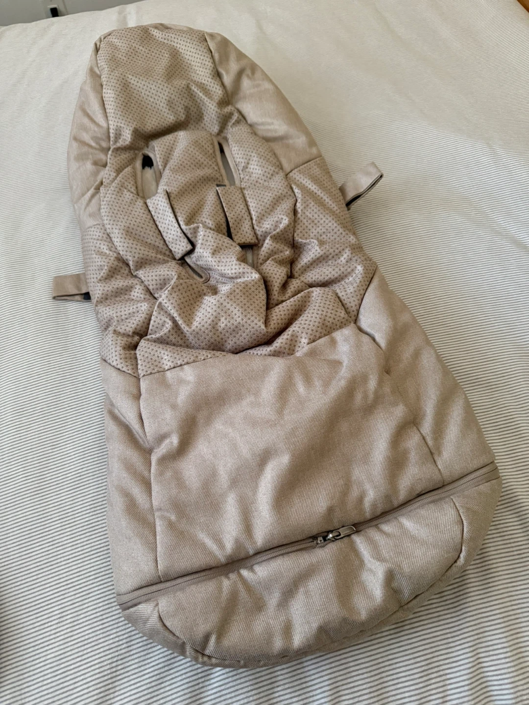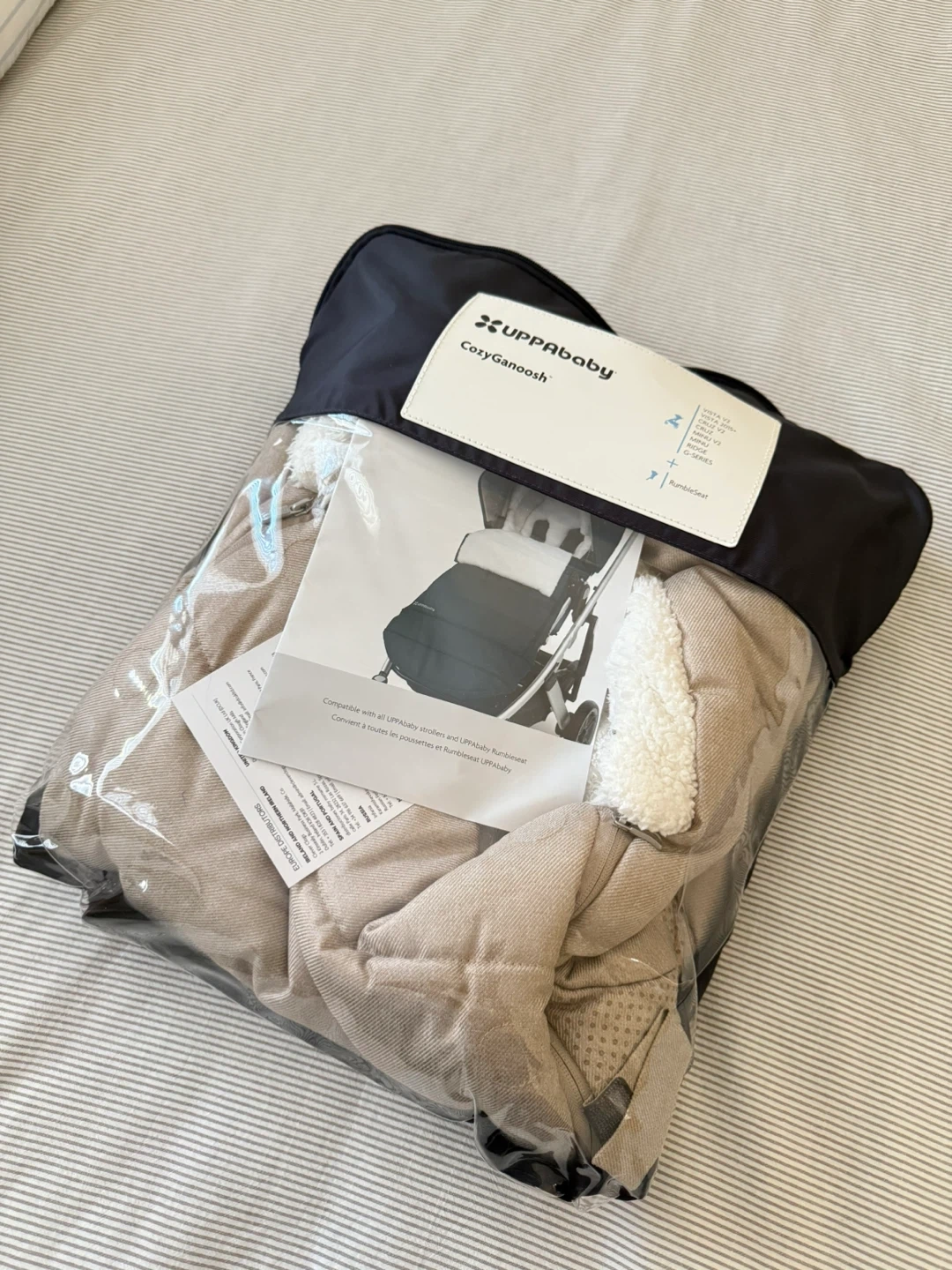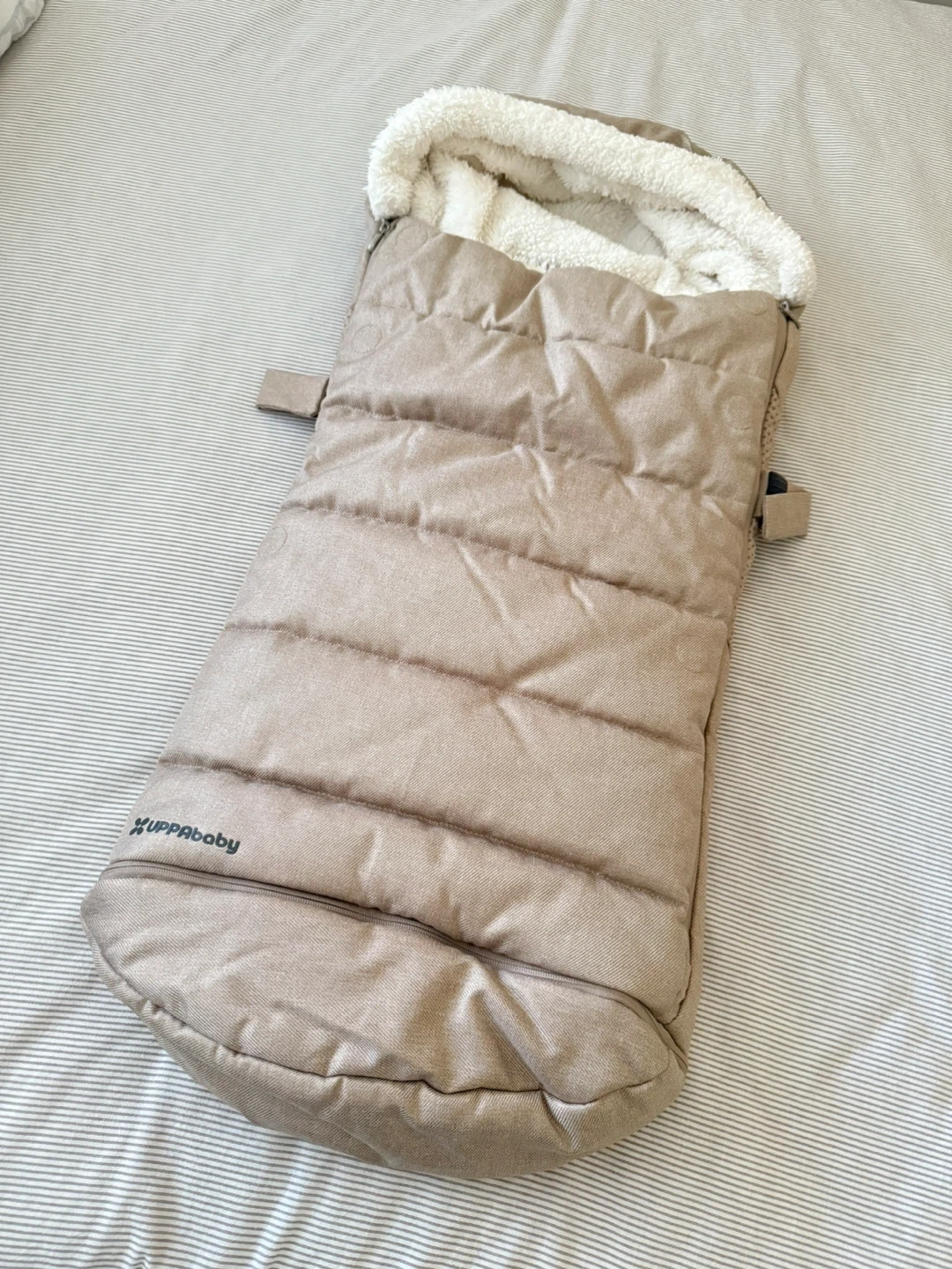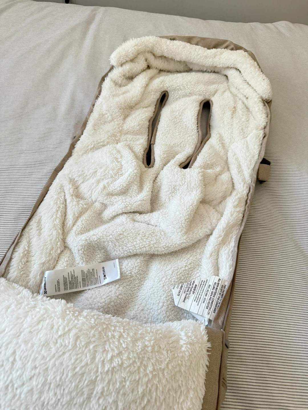 Excellent condition as it was only used a handful of times. Very warm and cozy for babies and toddlers. Great addition to Uppa Baby Stroller. Comes with storage bag.
