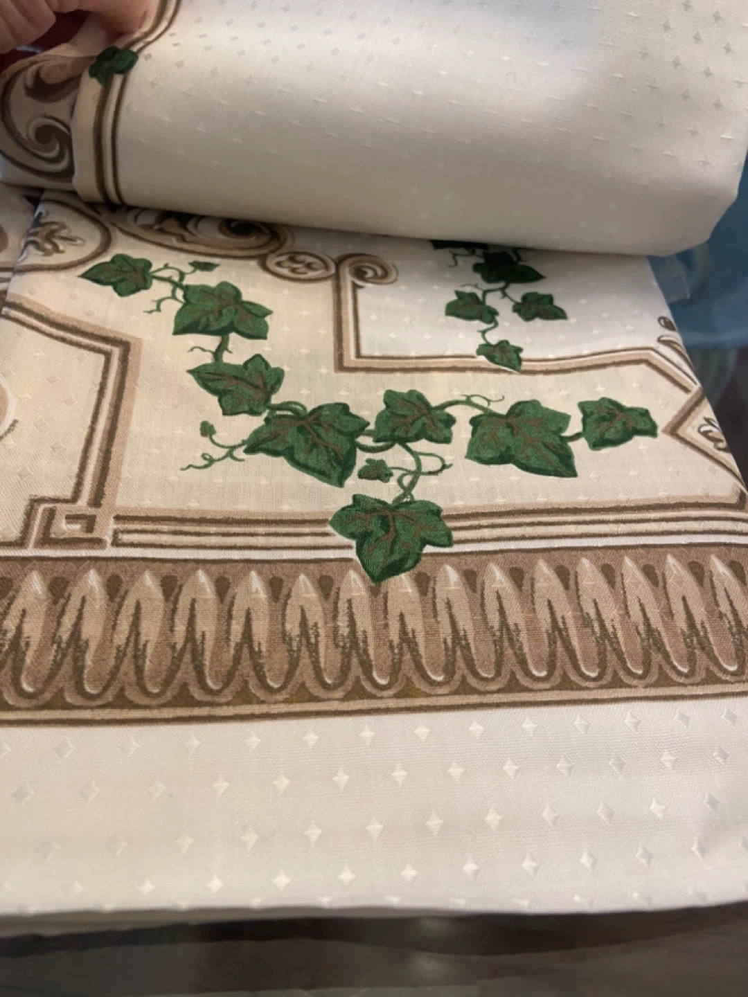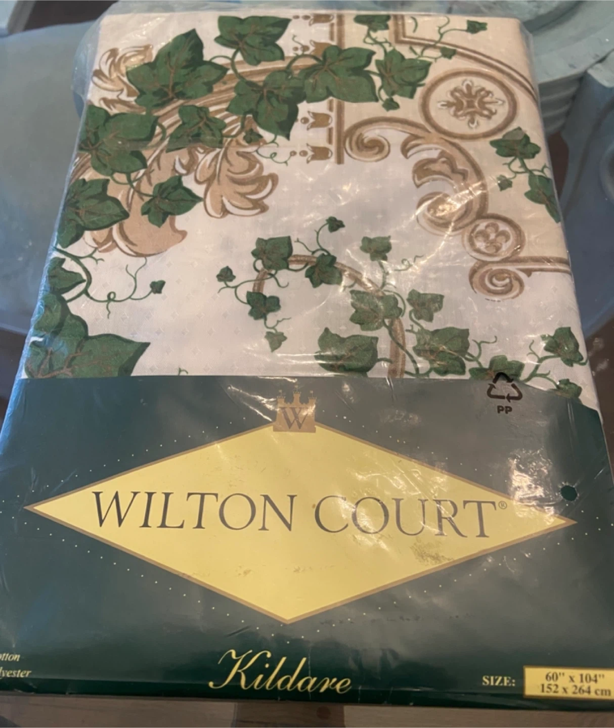 Lovely tablecloth from Wilton Court in the Kildare pattern. It's made of 60% cotton and 40% polyester. This tablecloth measures 60”x 104”
