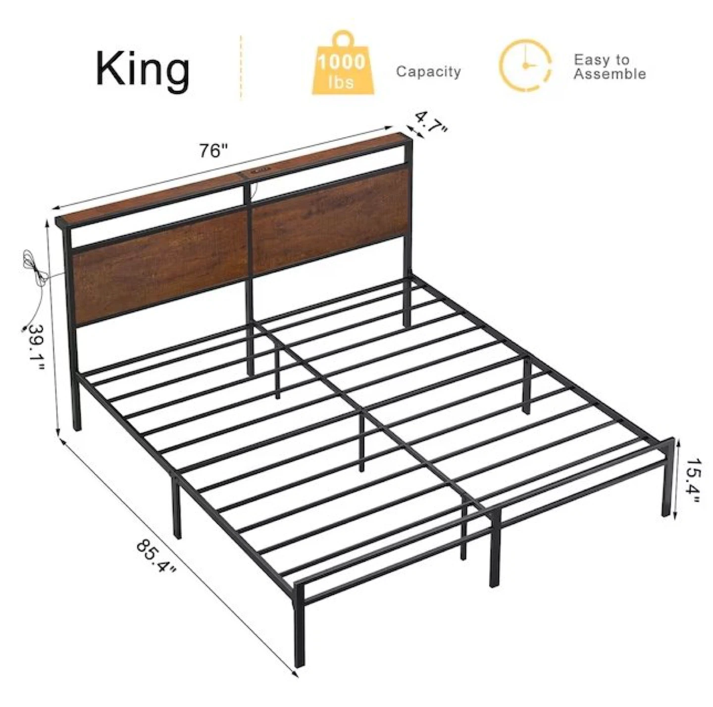 This is a king-size bed frame. It features a wooden headboard and a metal frame. The frame has a 1000 lb capacity and is easy to assemble. Bedding not included.
