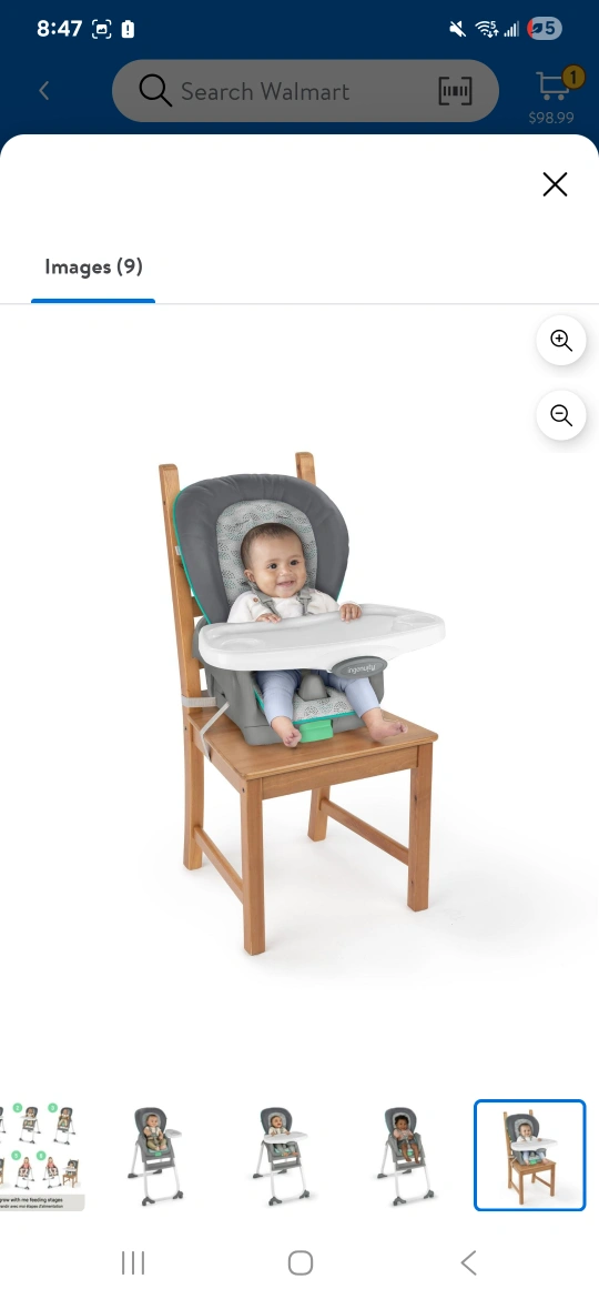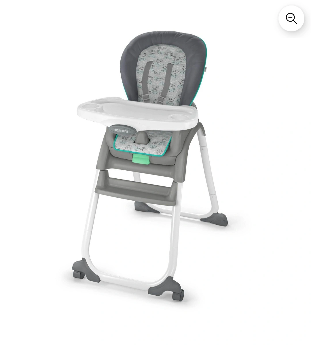 This Ingenuity 2-in-1 High Chair in grey is perfect for your little one! It can be used as a full-size high chair or as a booster seat when placed on a regular chair. The seat pad is easy to wipe clean, making mealtime messes a breeze. It's a great space-saving option for smaller homes!