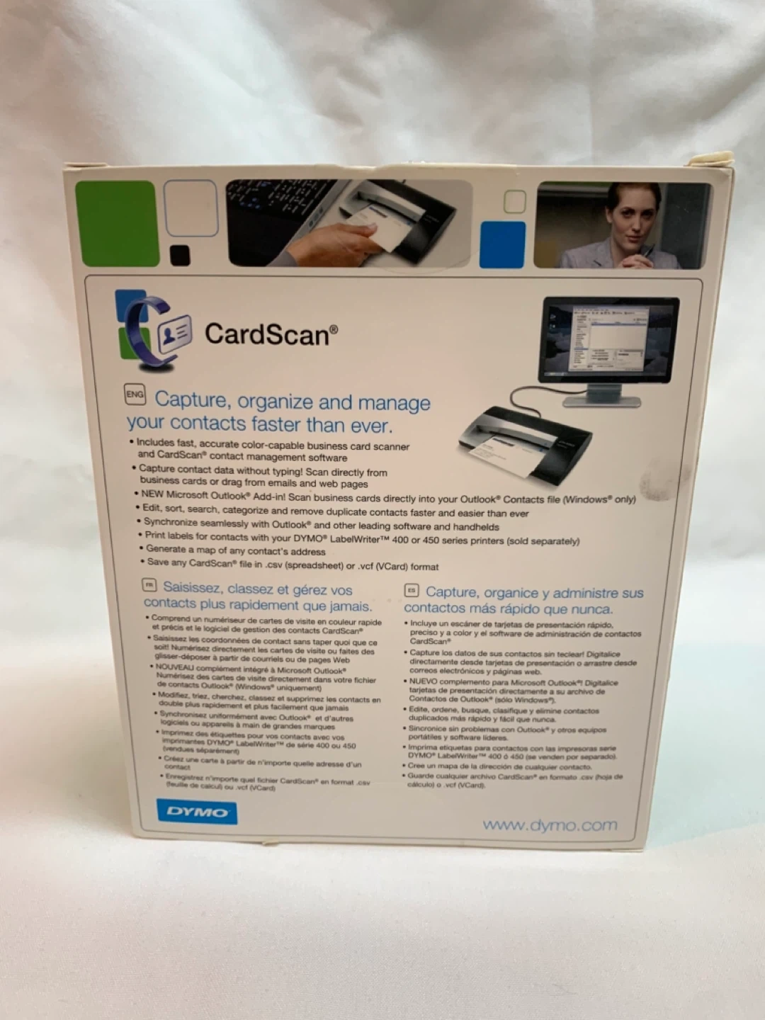 Scans business cards in full color and syncs them with your contacts. Includes original box and quick start guide. Advanced contact management system for PC and Mac. Brand new in the box.