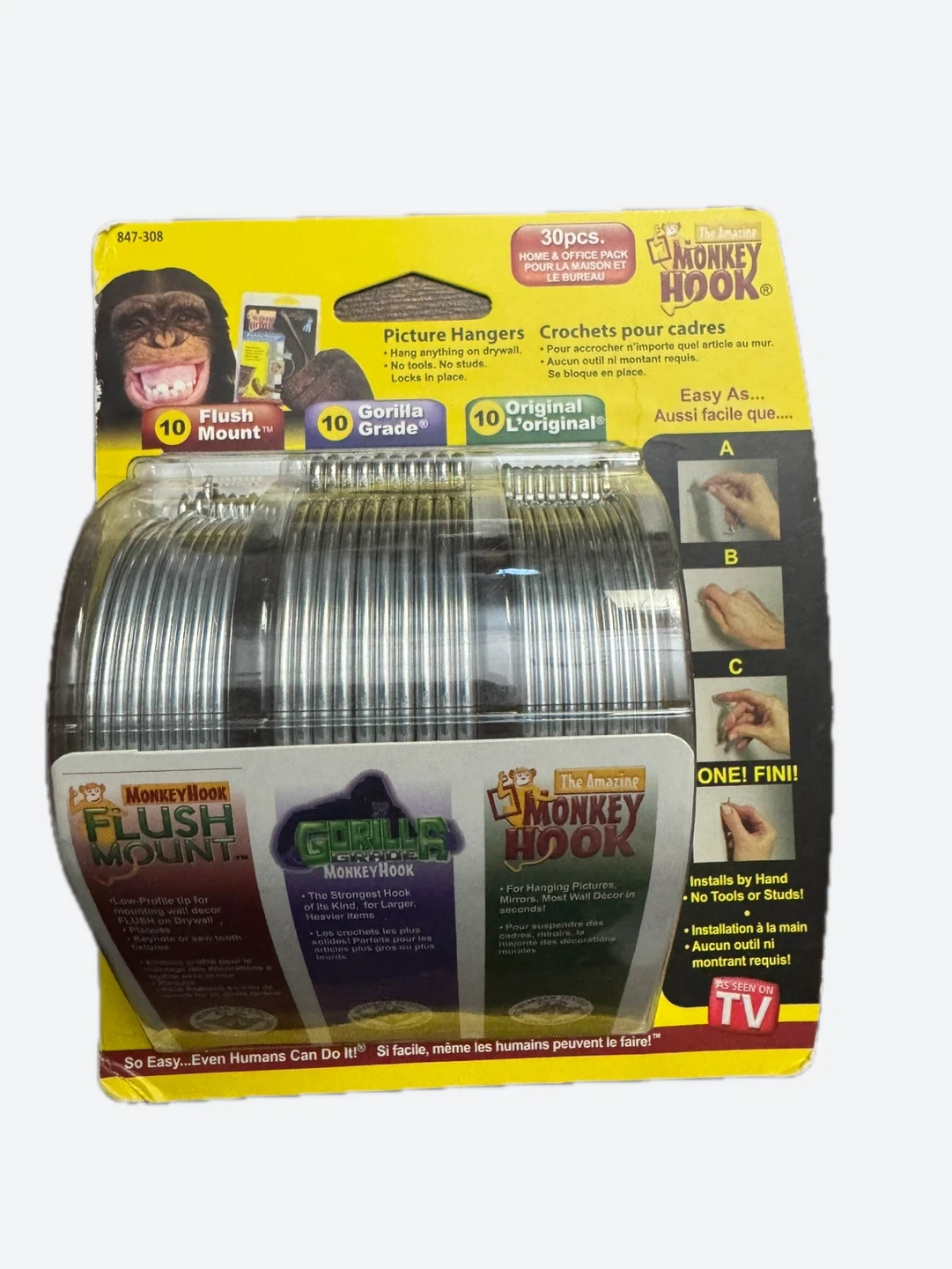 This is a 30-piece Home & Office Pack of The Amazing Monkey Hook picture hangers.