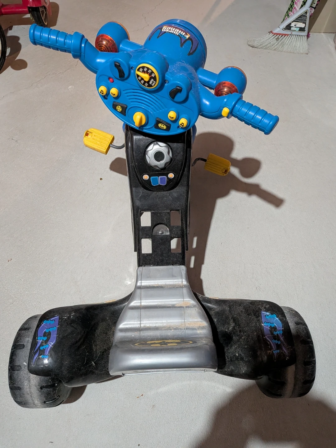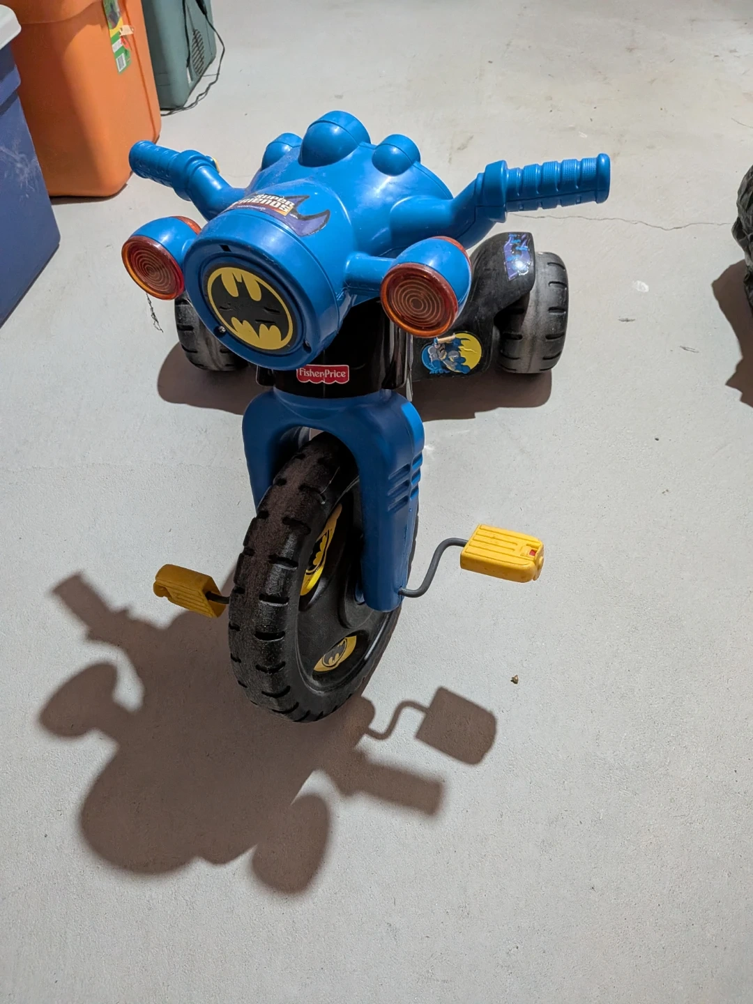 This Batman-themed tricycle is built for fun rides. It features a durable plastic construction and easy-to-pedal design. Great for little superheroes out for an adventure!