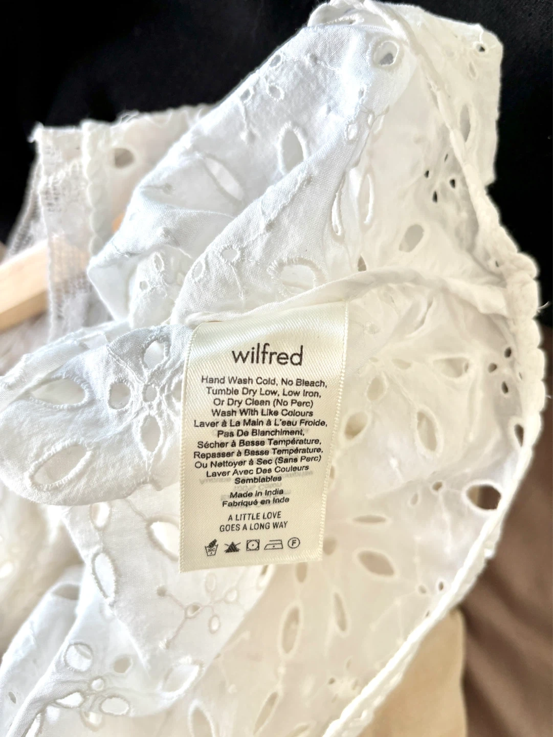 White broderie anglaise top from Wilfred. It's a size XS with short dolman sleeves