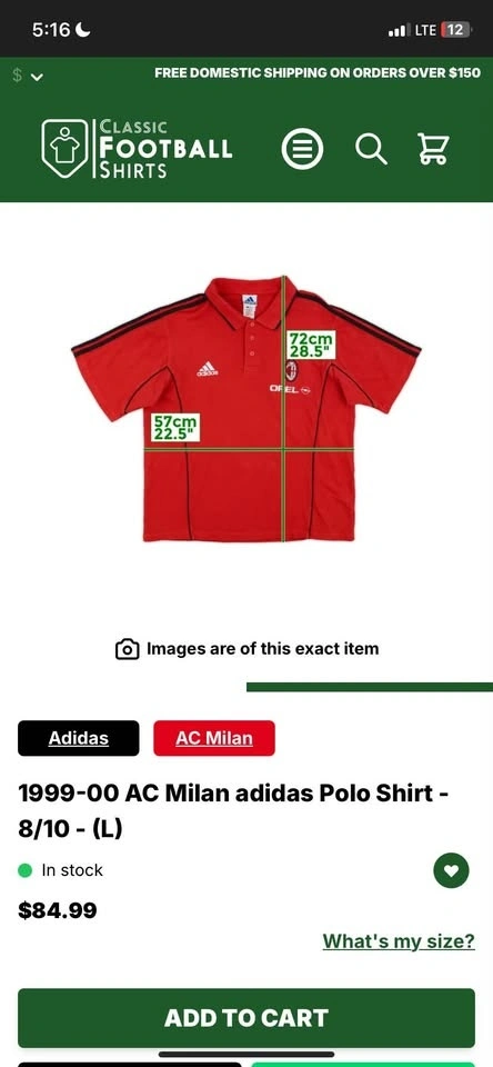 AC Milan vintage Adidas soccer jersey from the 2001-02 season. Large size. In mint condition with no wear or tear. This is a really rare and sought-after jersey.