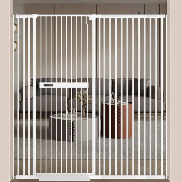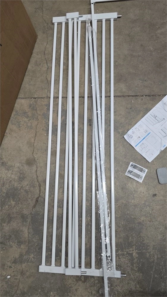 New, all components included. This extra tall and wide gate is 61.02 inches high, effectively preventing cats from jumping over. The ultra-narrow spacing (1.37") prevents pets or kids from getting through or stuck. Includes two densification rods for wider gaps. The lock system is conveniently located in the middle and allows the gate to open in both directions, staying open at 90° and auto-closing when less than that. Easy for adults to open with one hand but difficult for children. Features an upgraded thicker pipe wall for stability. Pickup is near Kipling and Evans.