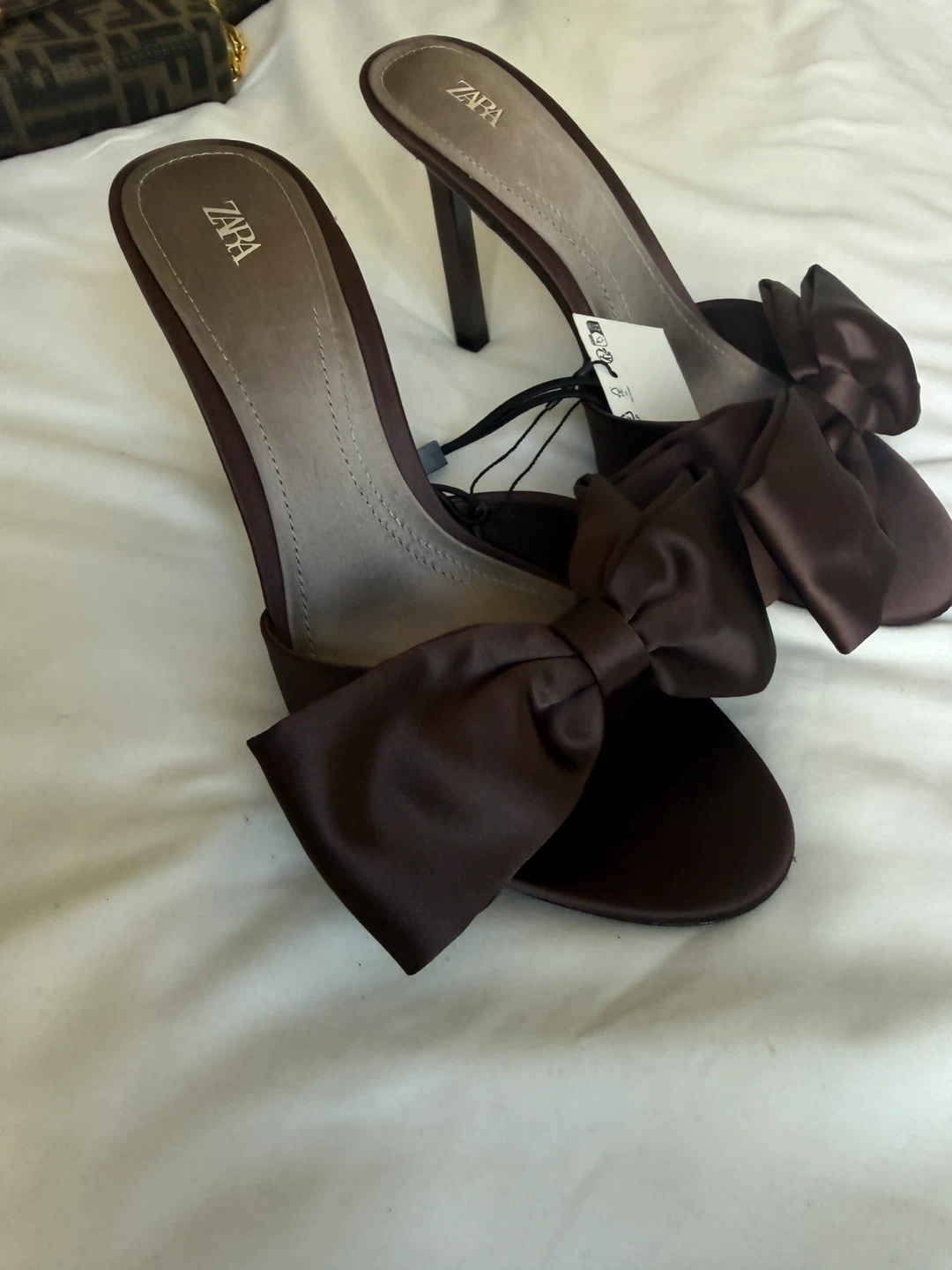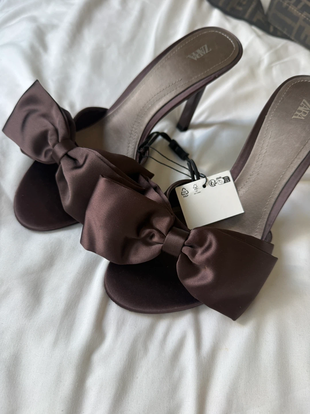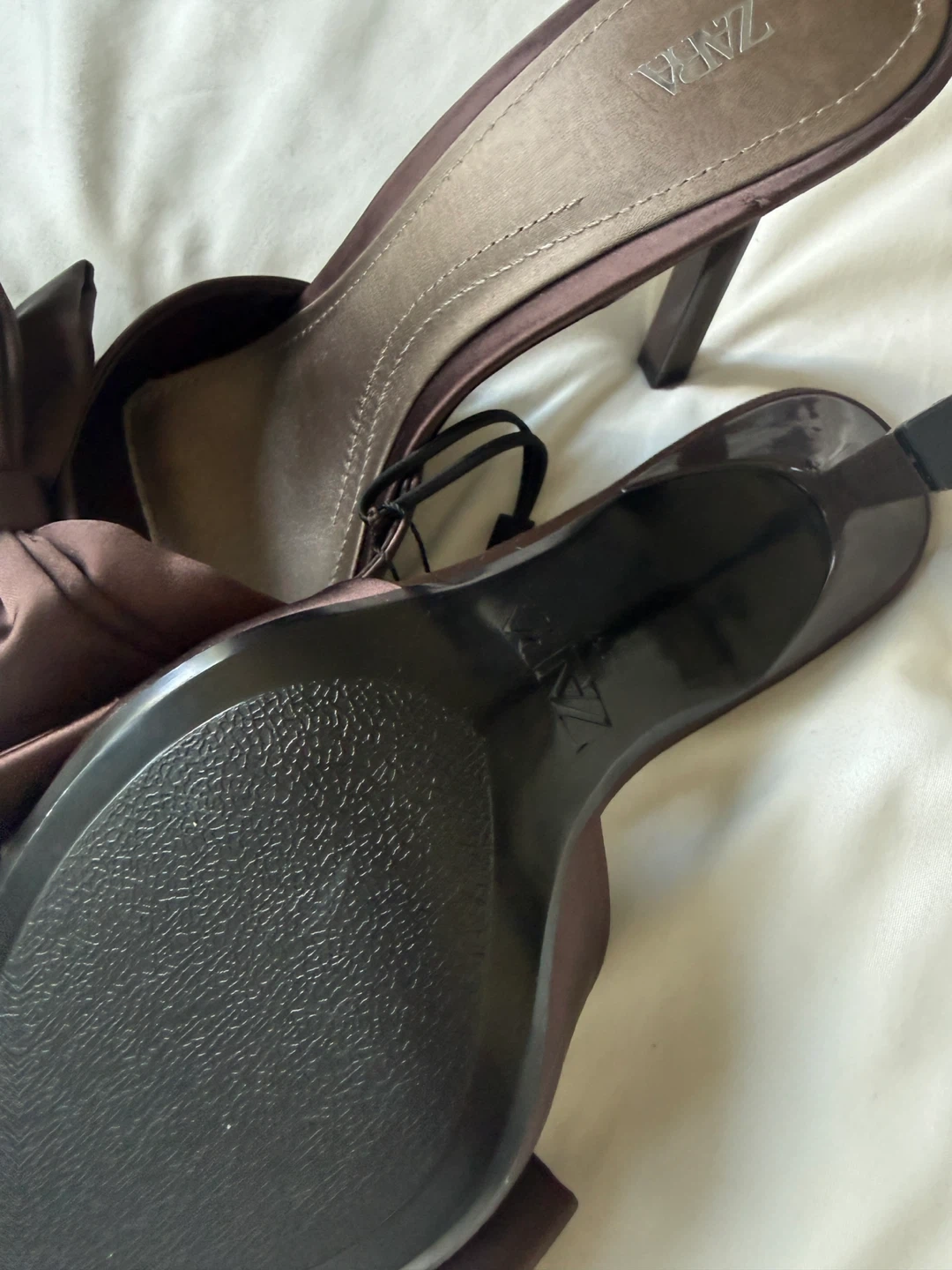 ZARA Women's Heeled Mules with Bow Detail - Brown