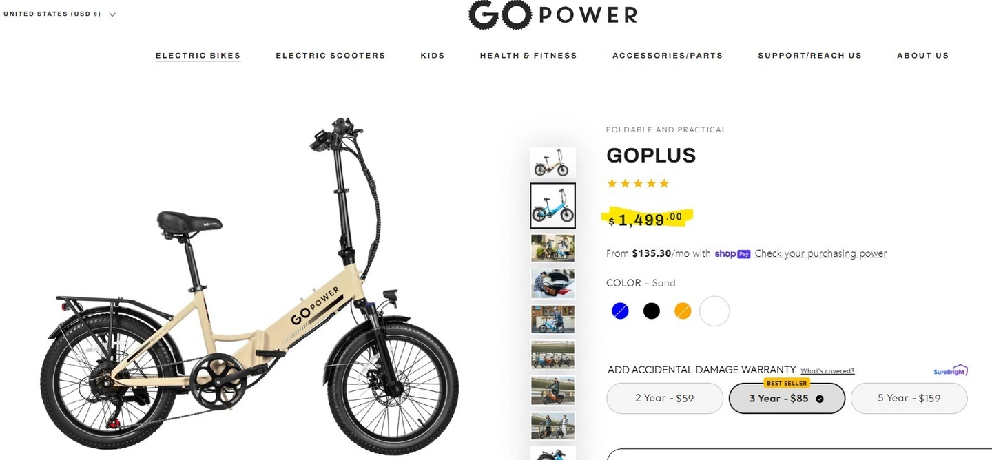 Brand / Model / Color: Go Power Bike / GoPlus / Sand (same model as shown in the photos)
