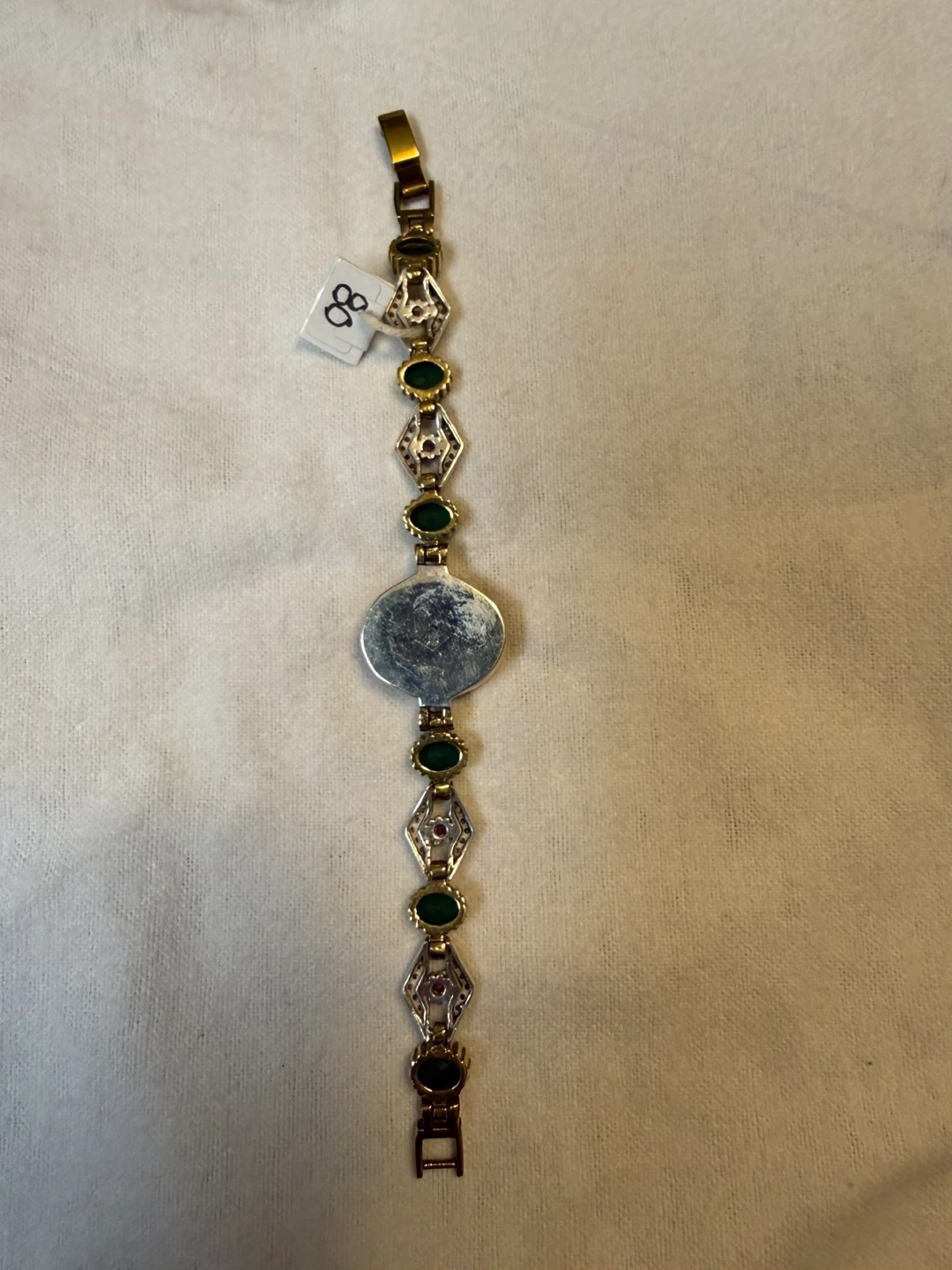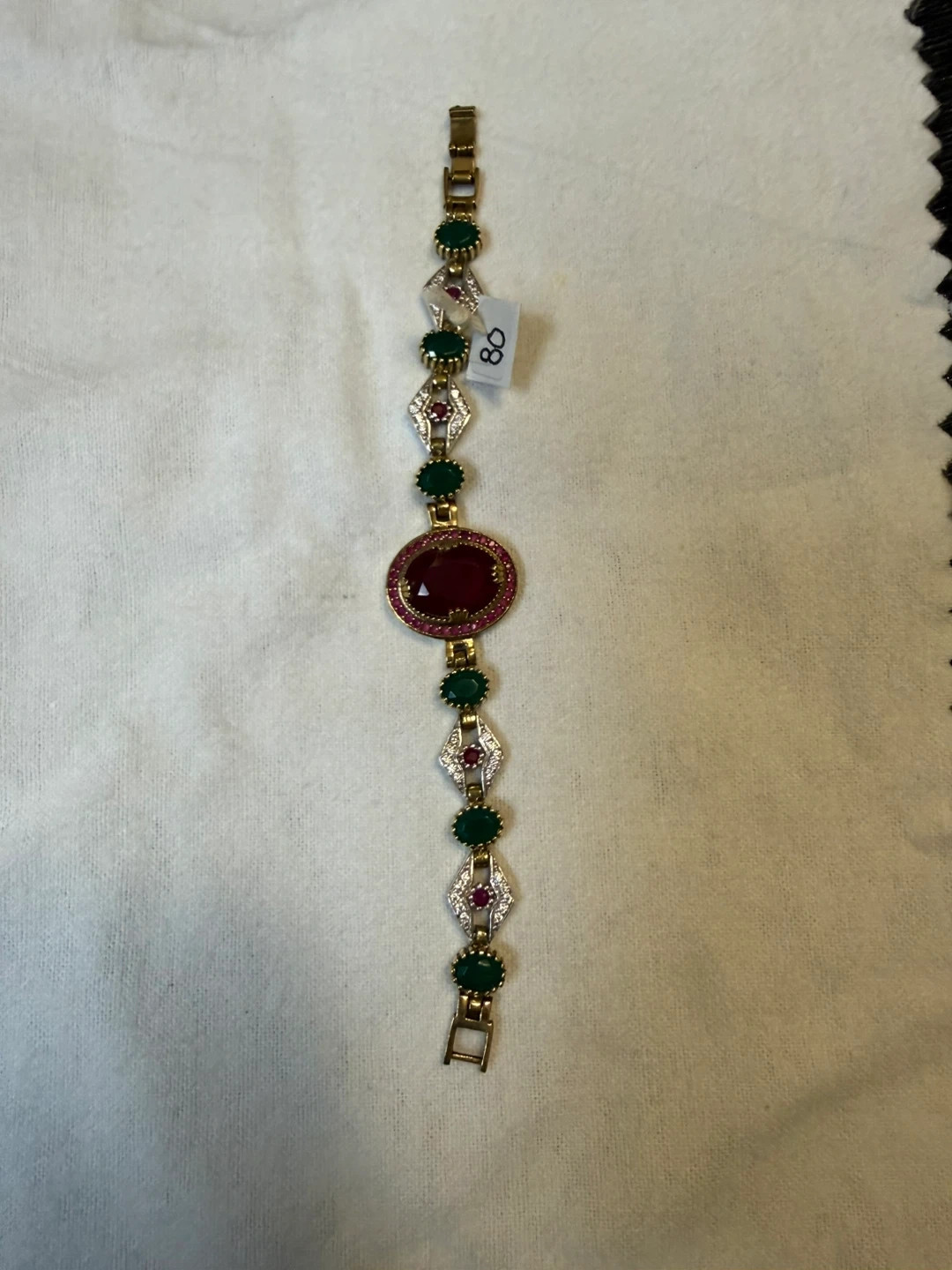 925 stamped with copper 6” Bracelet with Green and Red Stones
