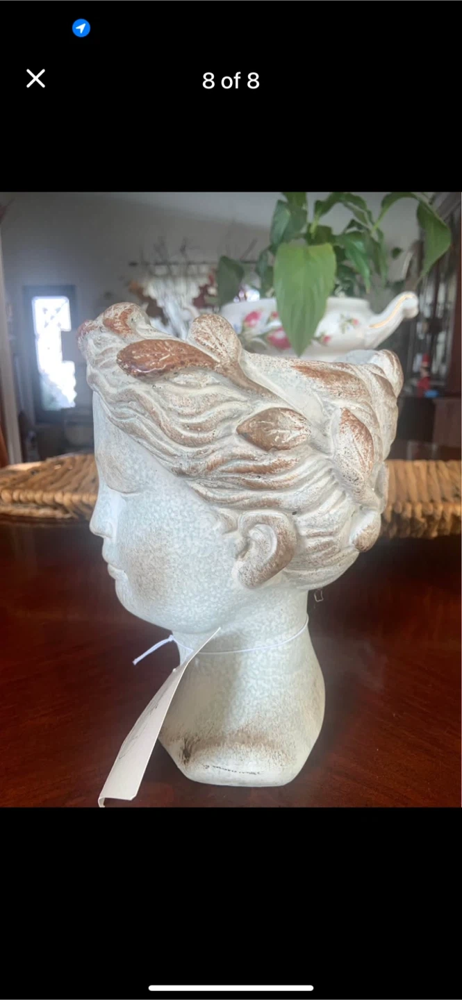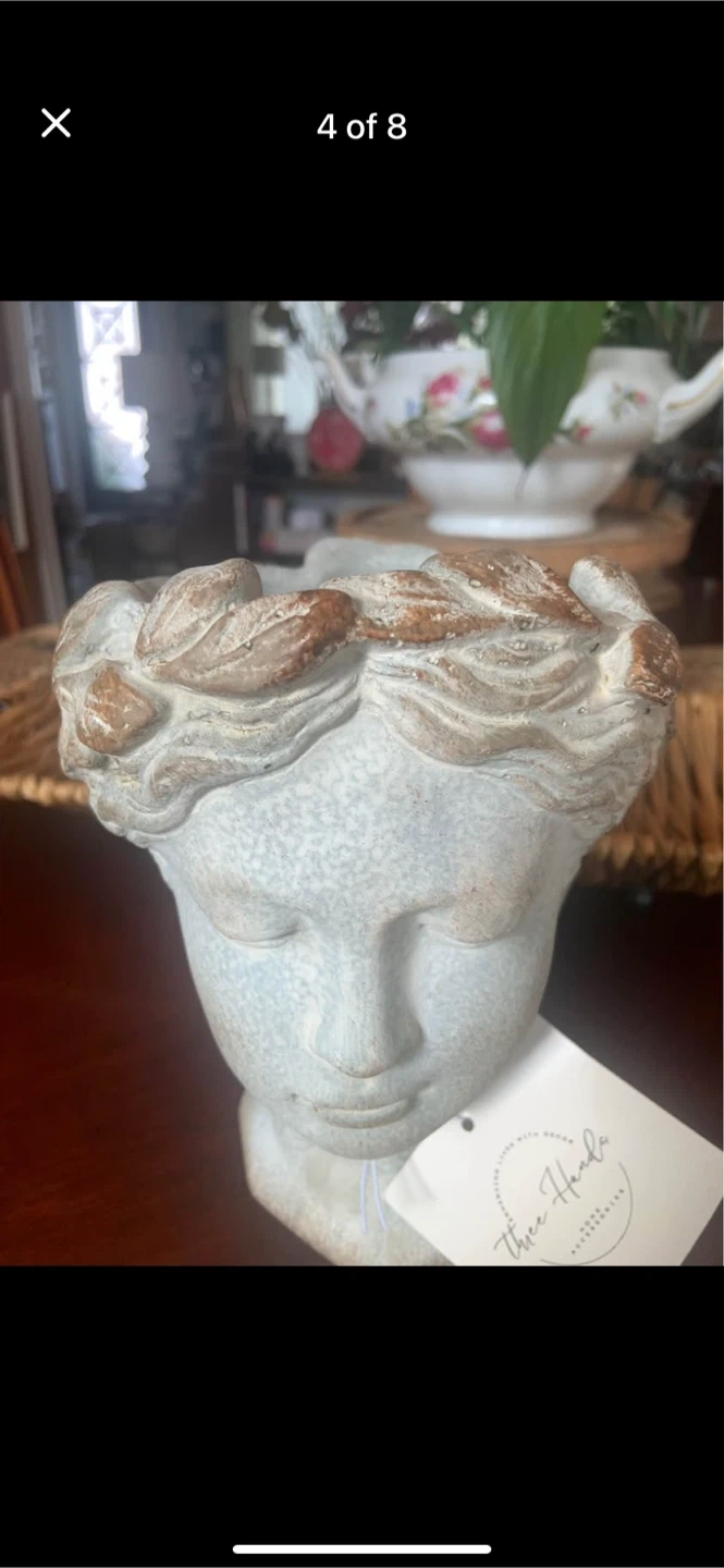 •’ GRECIAN CEMENT GODDESS WIMAN HEAD PLANTER ‘