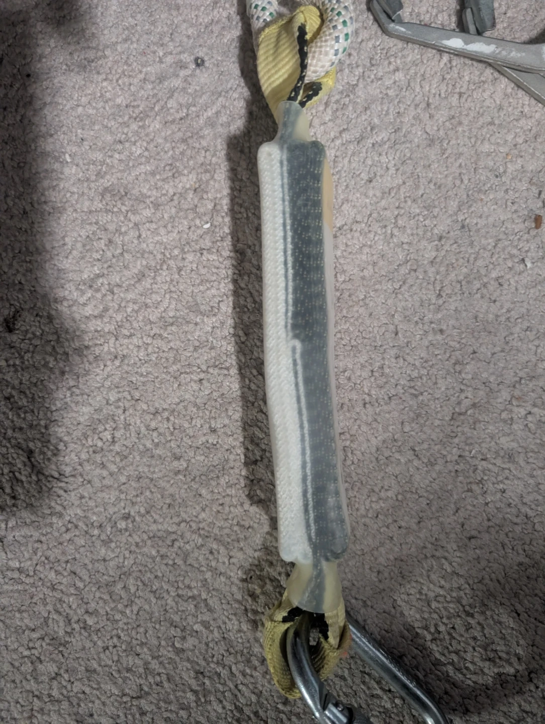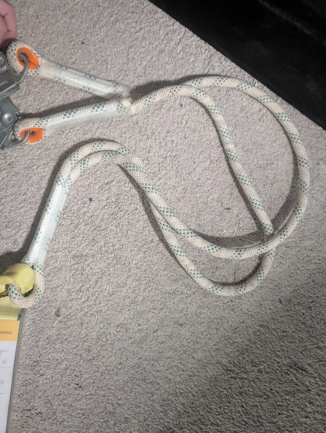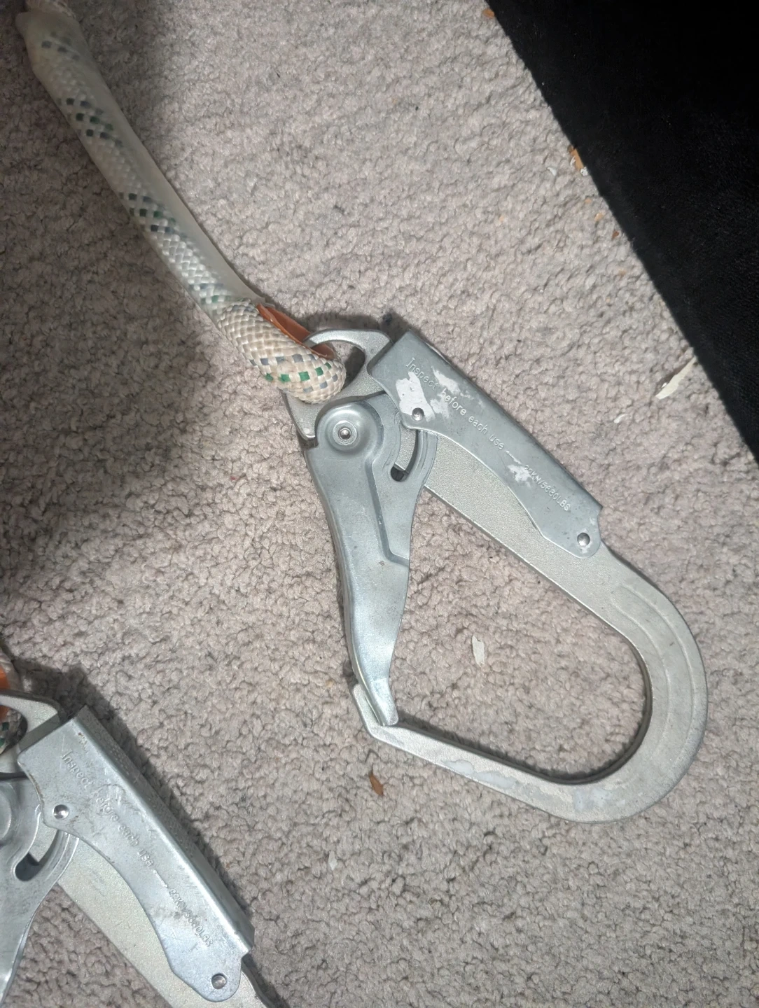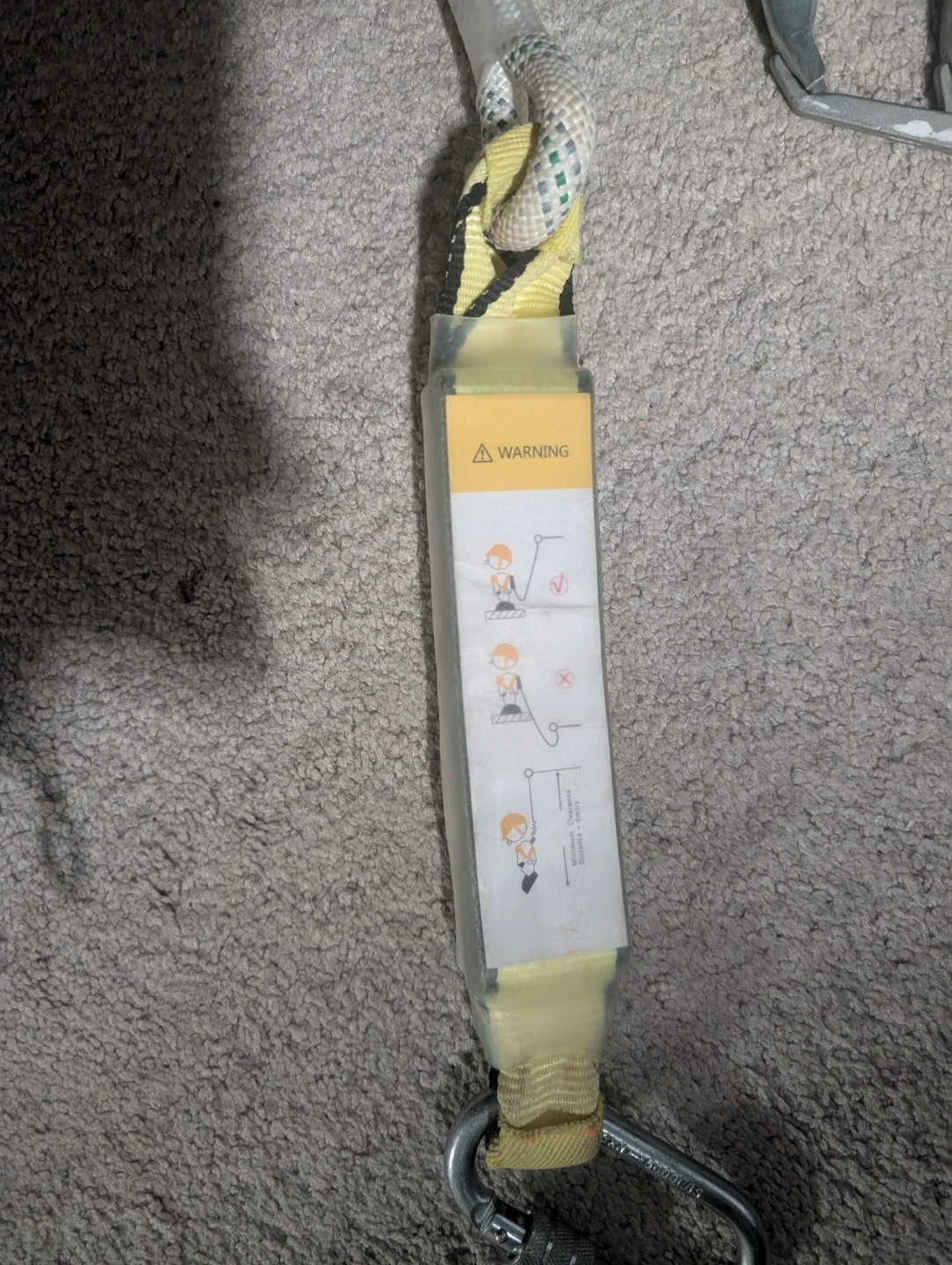 This is a full body safety harness with an energy absorber. It's designed for fall protection. The energy absorber has a max allowable length of 2.0m and is certified to EN353-2. He also has a support belt and travel restriction It's only been used 4 times