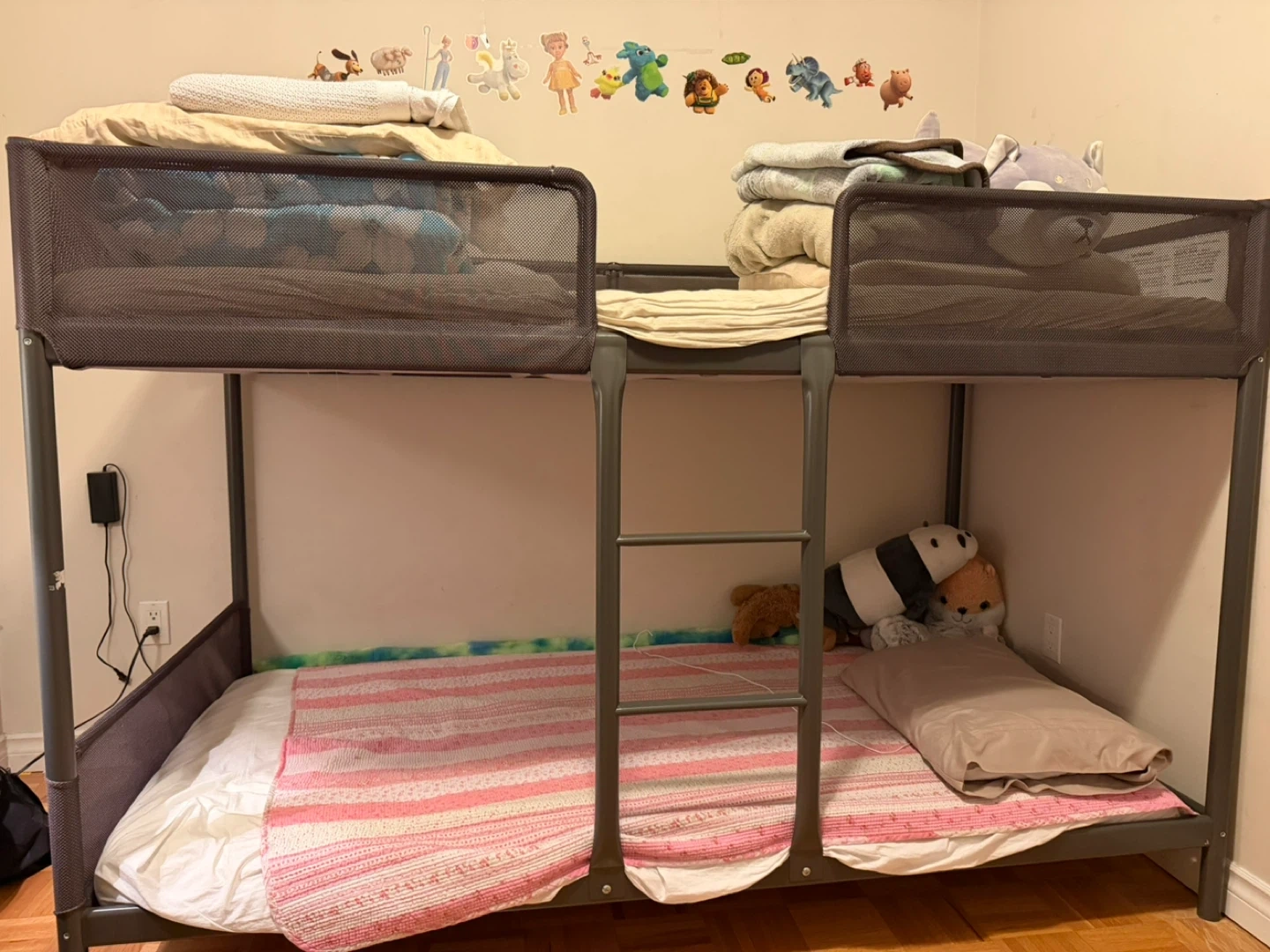 This is a metal bunk bed frame. It includes a ladder for easy access to the top bunk. The frame is sturdy and designed for two twin-sized mattresses. Mattress included. Clean no pets no smoke. https://www.ikea.com/ca/en/p/tuffing-bunk-bed-frame-dark-gray-70299285/?gad_source=1&gad_campaignid=15835029597&gbraid=0AAAAACqC6Erw_7NHsSx_AMMerz-4nDfQj&gclid=CjwKCAjw1N7NBhAoEiwAcPchp6G3juZC0g23PjIJSQZnie-_YefWS7AyfIxacOnjgE9rEKWYLMptChoCESkQAvD_BwE
