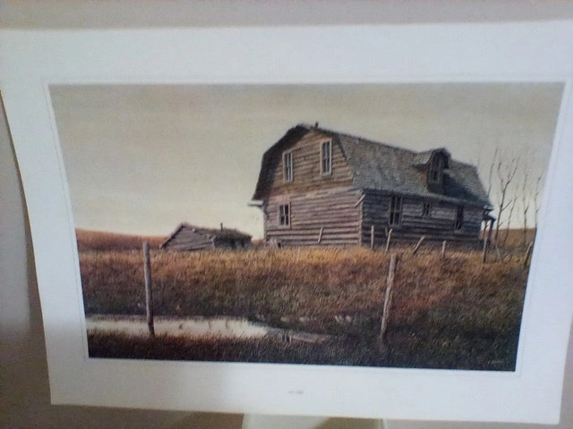 A lot of 7 old, loose art prints, all signed and in very good condition. Includes works by J.F. Lansdowne (Birds 1968), Ronald Woodall, ISA Smiler (Indigenous Artist), William Roberts (Litho Print / Vanishing Building from Manitoba), Sally Wildman (Litho Print / Vanishing Building from Ontario), Len Gibbs (Litho Print / Vanishing Building from Alberta), Mary Pratt (Litho Print / Vanishing Building), and Geoffrey Rock (Vanishing Building from Quebec).
