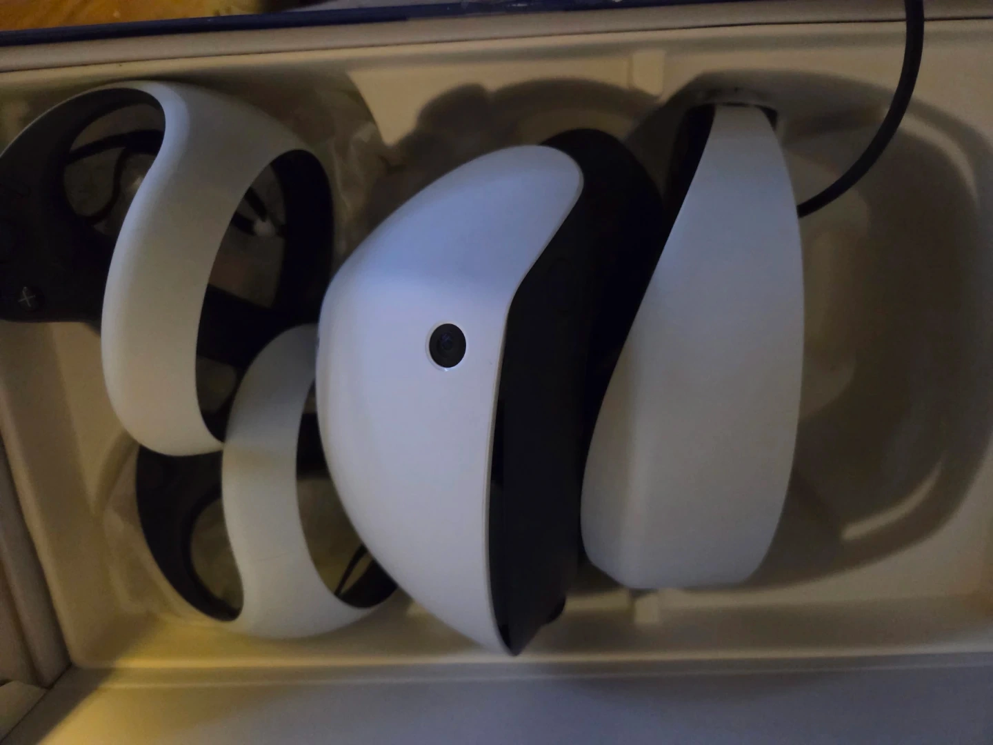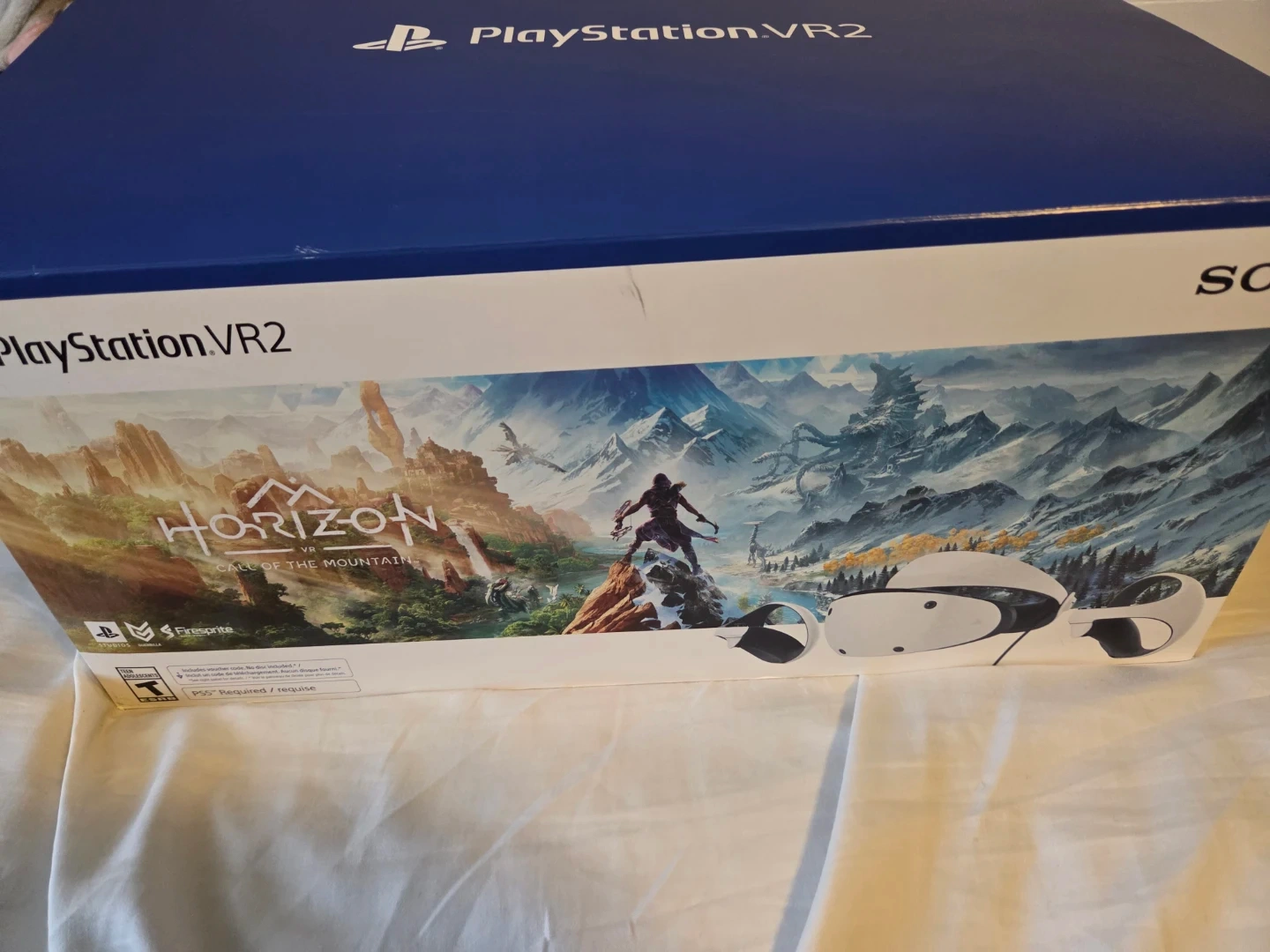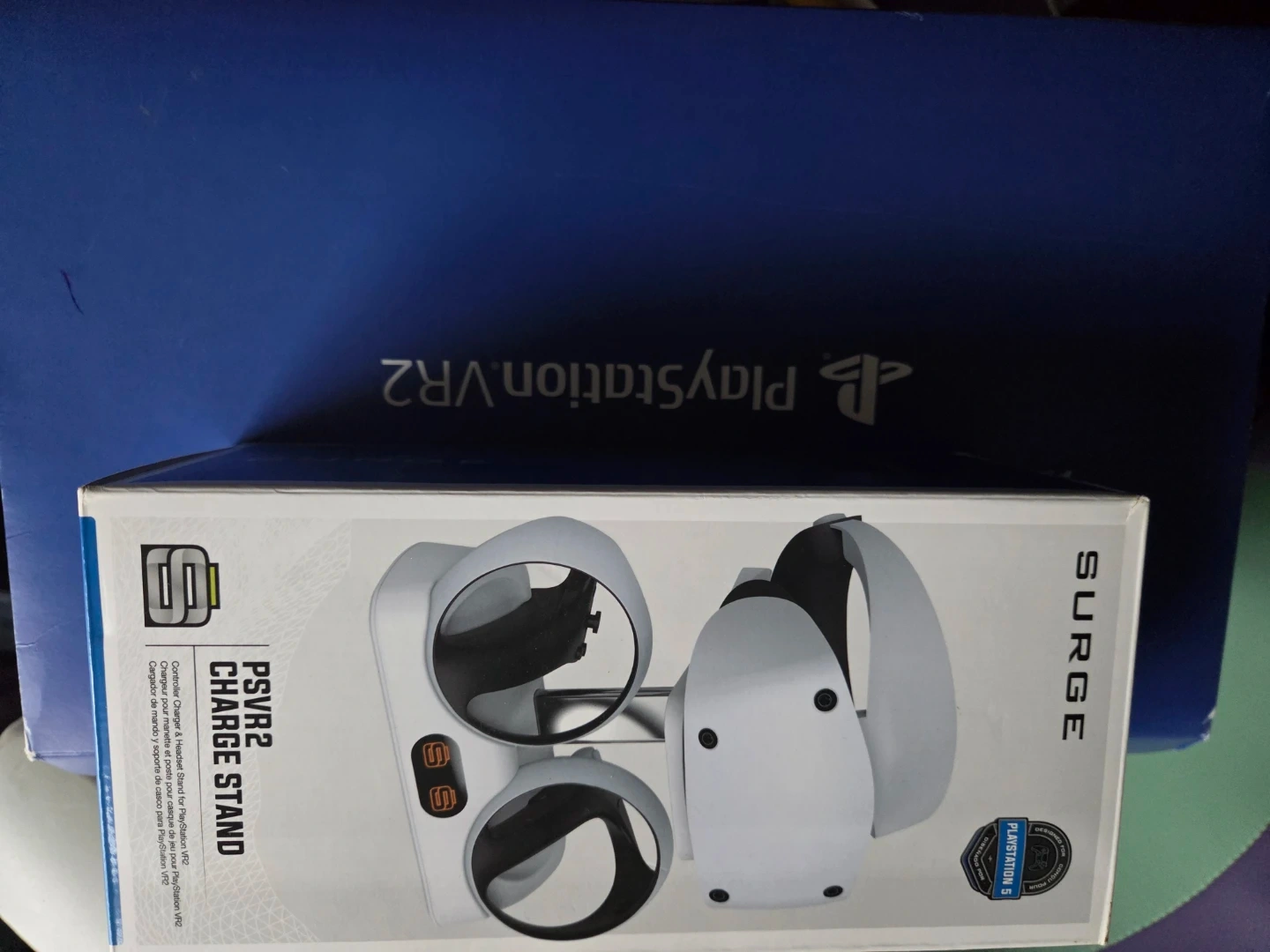This is the PlayStation VR2 system, including the headset, controllers, and original box. It also comes with charging stations. It's a great way to experience immersive virtual reality gaming!