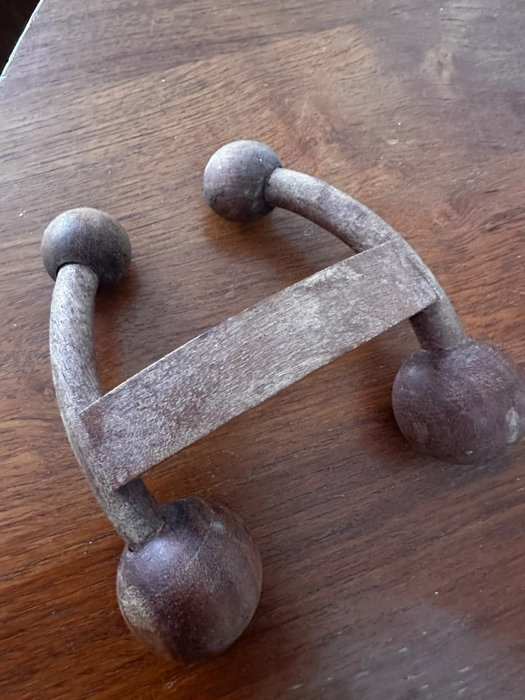 This wooden roller is designed for facial and body massage . It's made of smooth, solid wood with two rounded balls. This tool can help with relaxation and circulation.