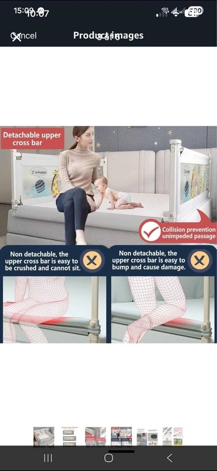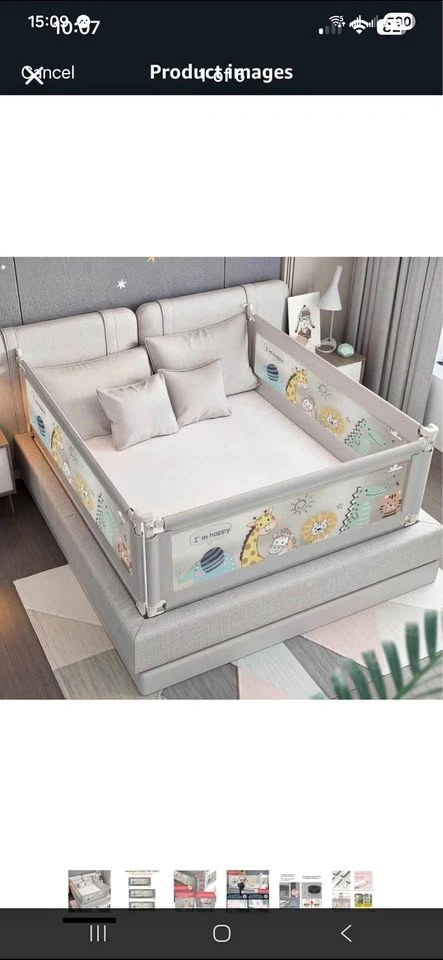We bought a king bed with built-in rails when we moved into our new place, so we don’t need these anymore. Fits queen-size bed. Sturdy metal frame with breathable mesh panels. Neutral beige/cream color with a cute animal print design. Soft padded top rail for extra safety. High coverage for added fall protection. Easy to install and remove. Folds down for easy access to the bed. Great for toddlers transitioning to a big bed or co-sleeping.