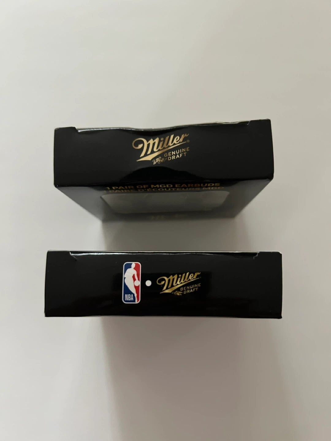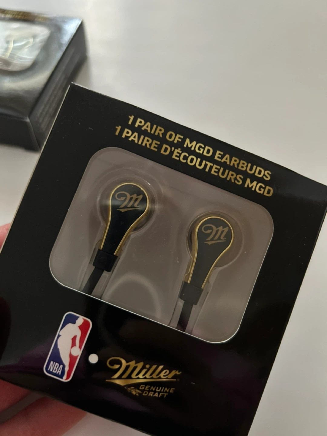 Brand New Miller Genuine Draft MGD earbuds. 2 packs available. $5 per pack. Features the classic Miller logo and NBA branding. Includes original packaging. Public meet Warden and highway 7 in Markham. Cash only please.