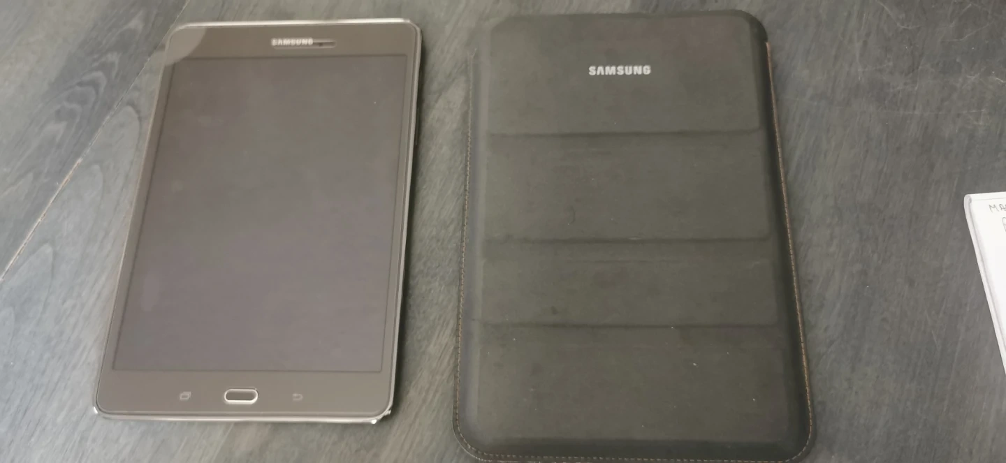 This Samsung Galaxy Tab A 8.0 is a great tablet for everyday use. It's in good condition and comes with a protective case. The tablet features a bright display and decent performance for browsing, streaming, and light gaming.