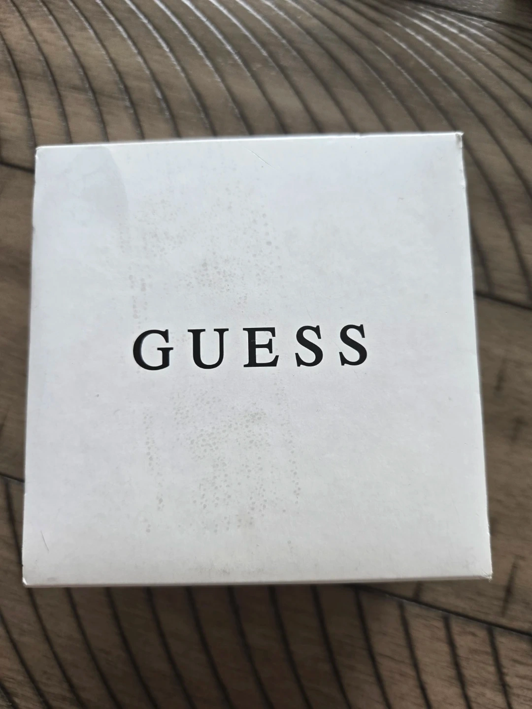 This GUESS chronograph watch boasts a crystal-accented bezel and band. It's a stylish timepiece with a white dial featuring gold-tone markers and sub-dials. Includes original GUESS box. Suitable for dressing up any outfit!