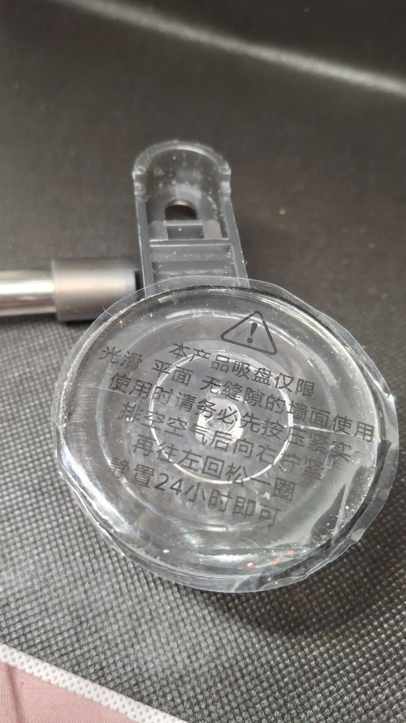 This is an adjustable shower rod holder with suction cups. It's made of metal and plastic. The holder attaches to smooth, flat surfaces for extra support.