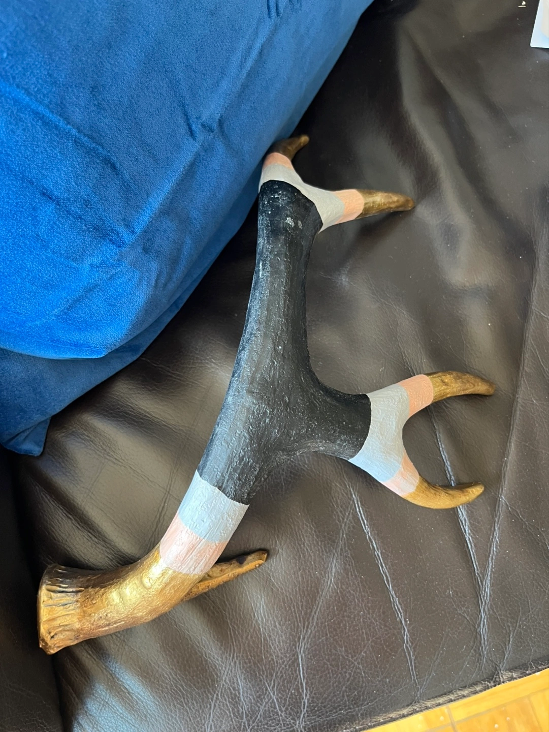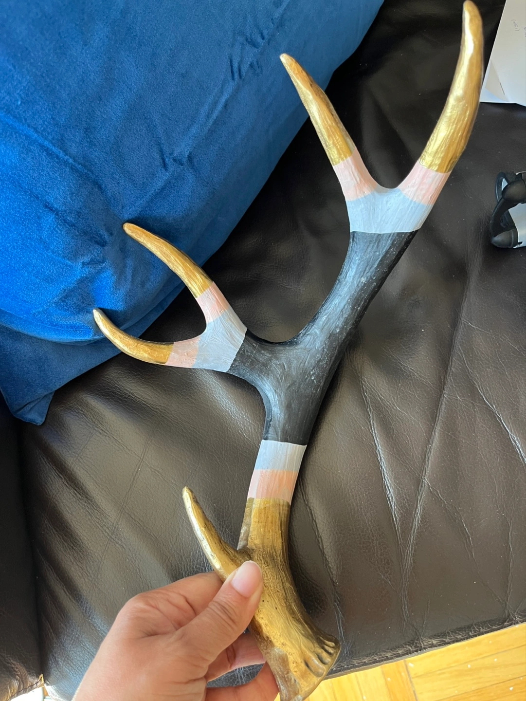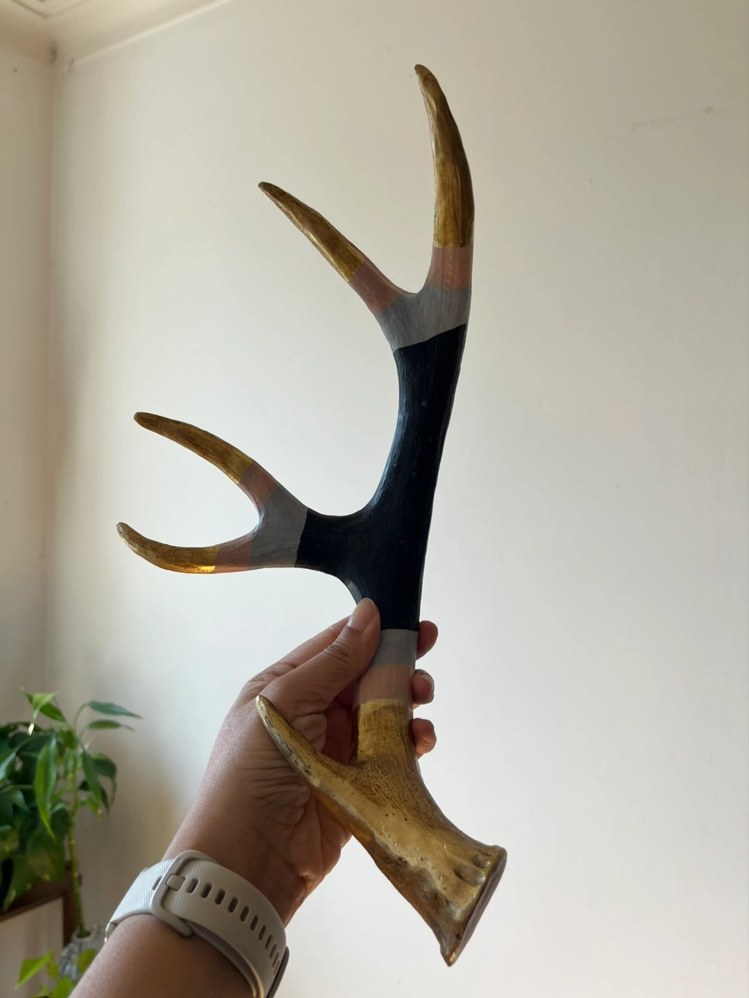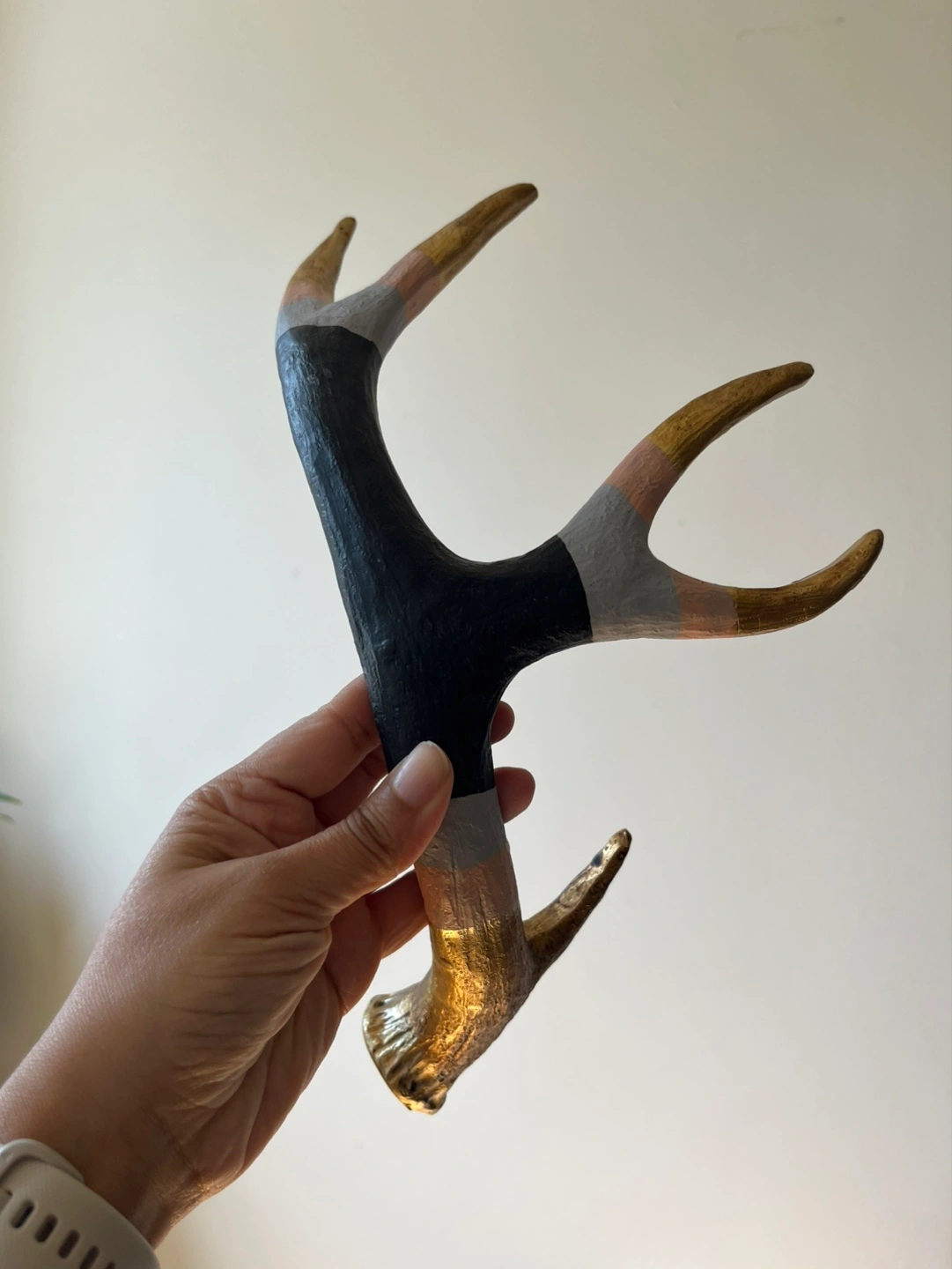 Hand-painted deer antlers. Black, gold, grey, and rose gold colours. Unique home decor. Perfect for a rustic or modern space.