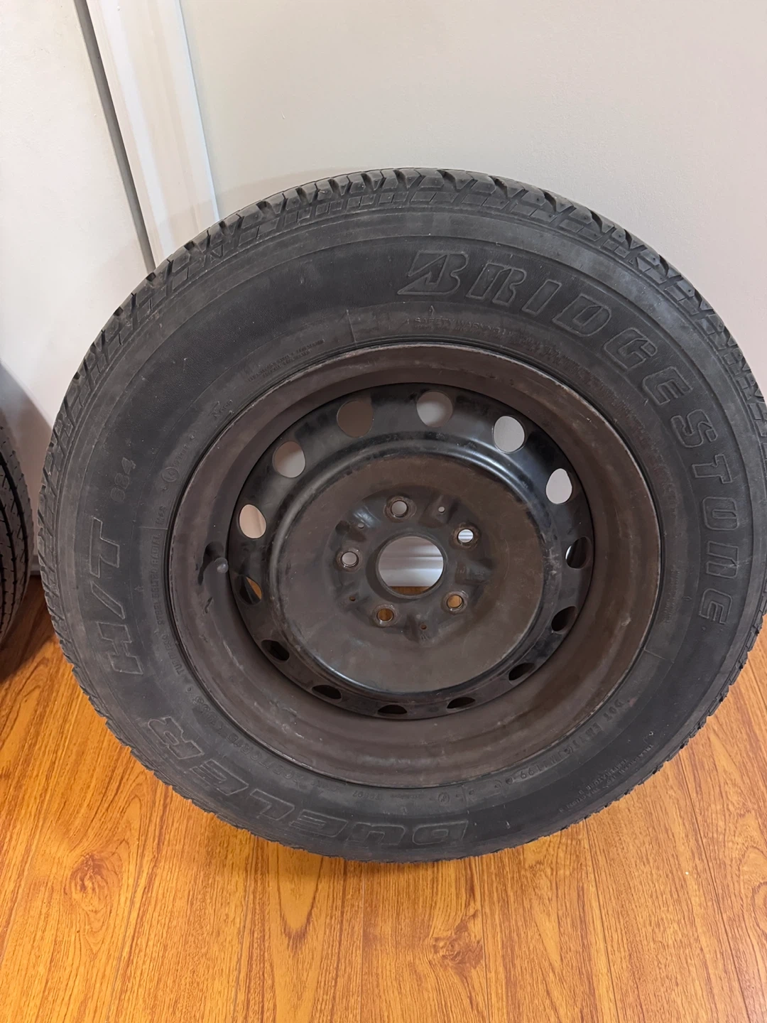 Selling a set of 4 Bridgestone winter tires size P205/70R15, mounted on rims. They're used but still have some life left in them!