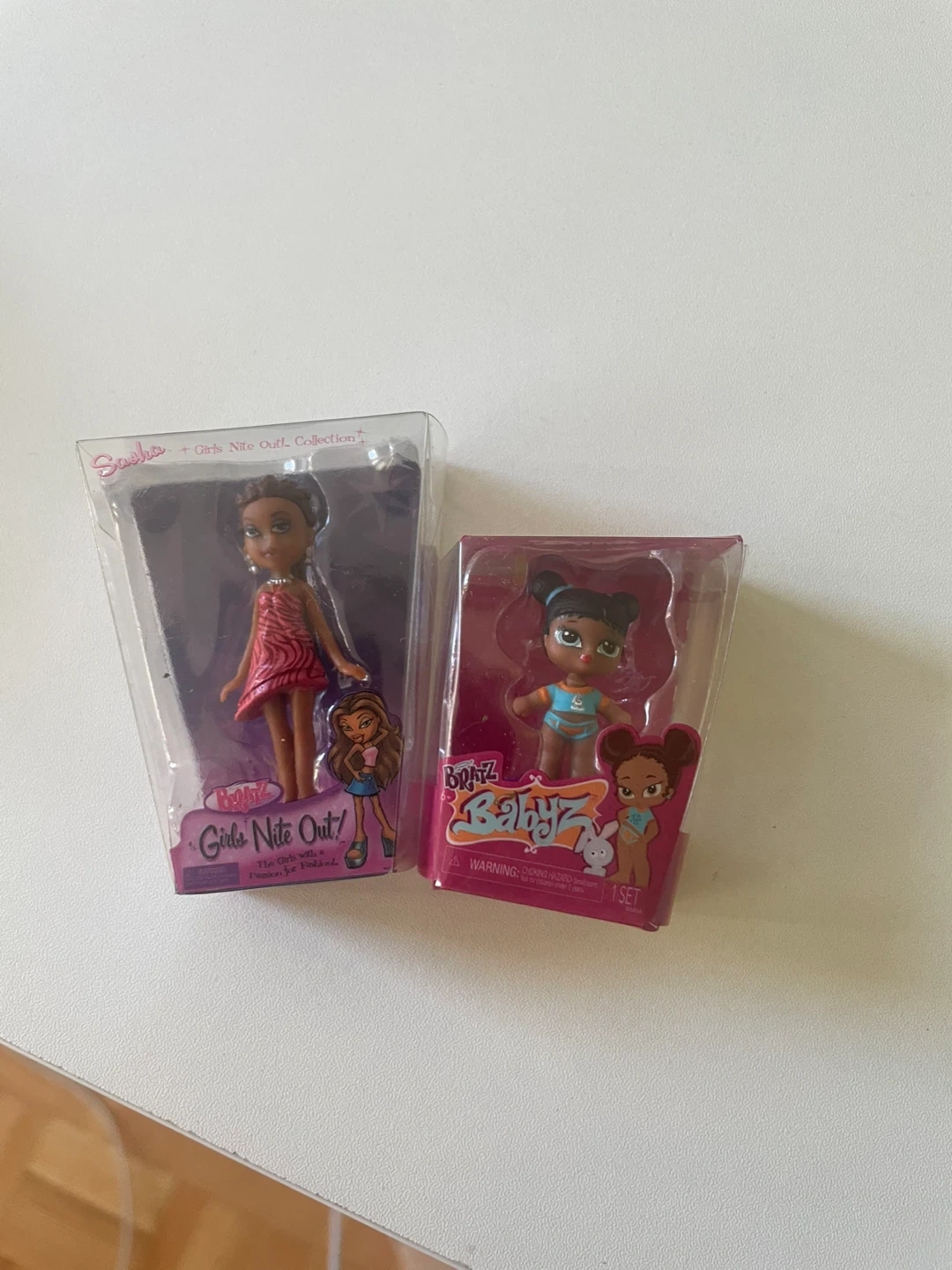Selling two Bratz dolls, still in their original packaging! One is Sasha from the "Girls Nite Out!" collection, and the other is a Babyz Bratz doll. Great for collectors or kids who love Bratz
