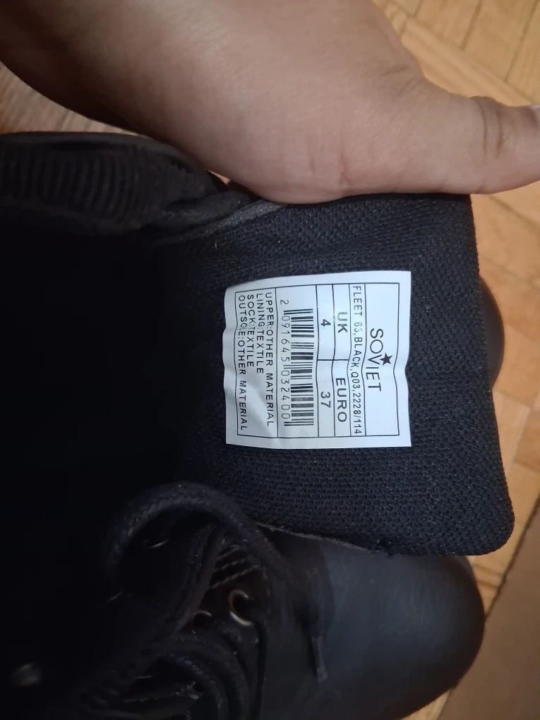 Selling a pair of Soviet Fleet 63 boots in black for women. They are a size 4 UK, which is equivalent to a Euro size 37 (in Canadian is 6). The upper and sock are made of textile, and the outsole is made of other material. The boots are in good condition and great for winter