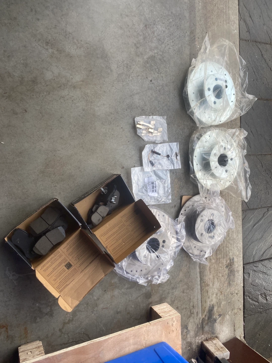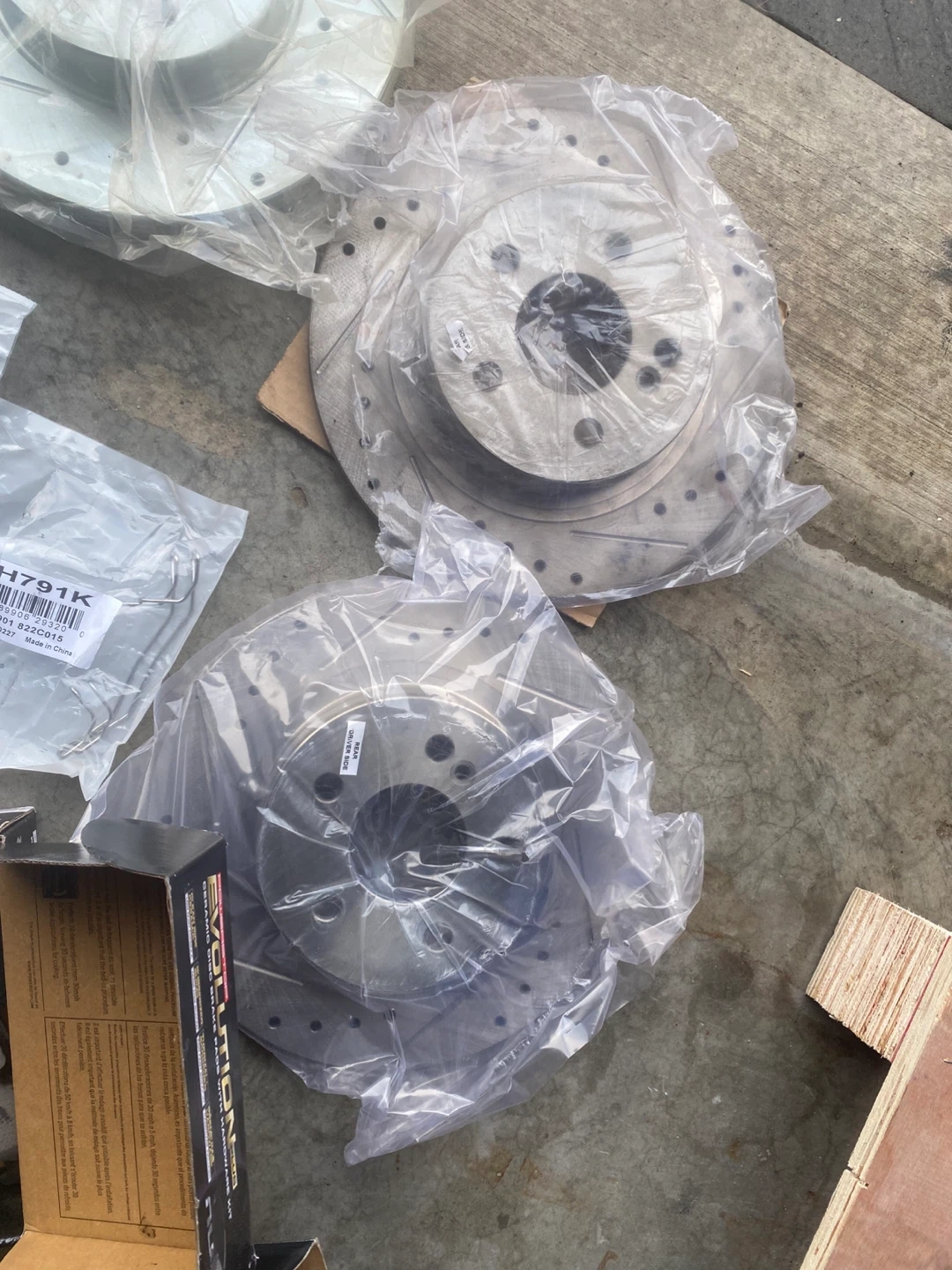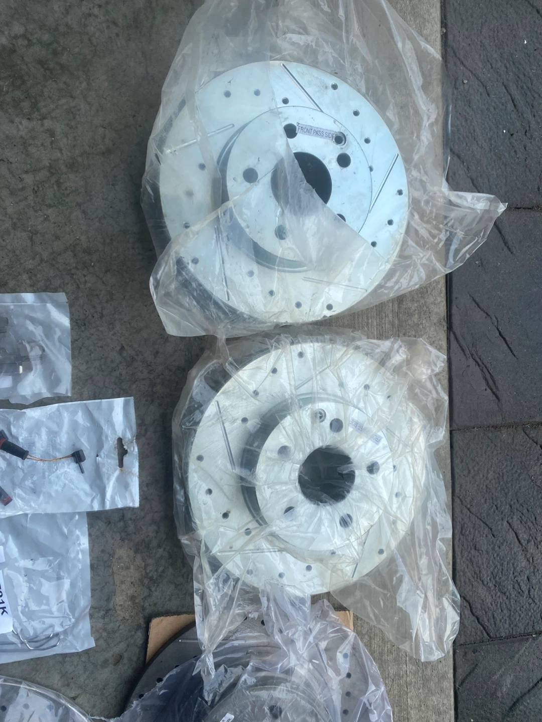 Callahan brake parts front & rear brake kit for Mercedes Benz C250 fit 2012-2015 & C300 fit 2008 -2012 Drilled & slolted Disc Rotors with ceramic brake pads plus sensors & hardware brand Callahan part no . EBYK025616 still in box