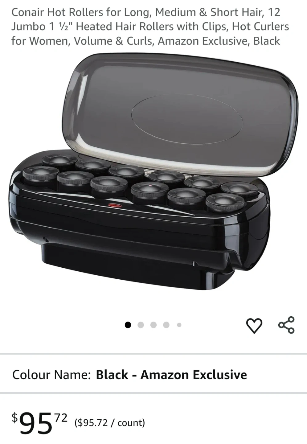 Conair 12 Jumbo Hot Rollers, 1 1/2" Heated Hair Rollers for volume and curls. Includes clips. Amazon Exclusive, Black colour.