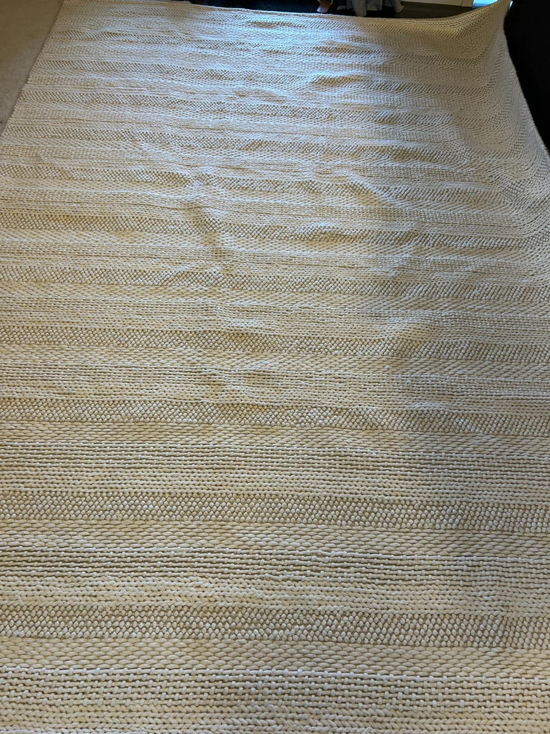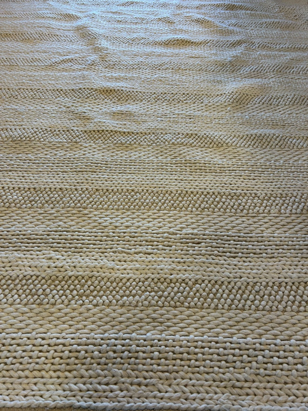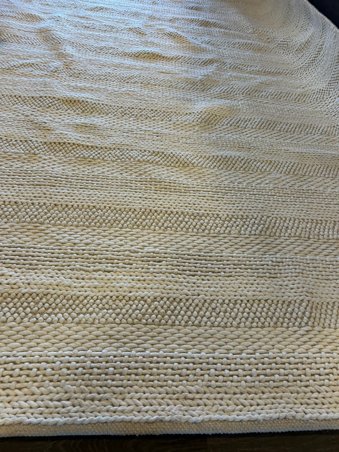 Selling a 9' x 12', Ivory, Handmade Boho Stripe Wool Area Rug. Woven pattern. It's made from a blend of natural fibres. The rug features a mix of braided and looped textures throughout its surface. If interested message.