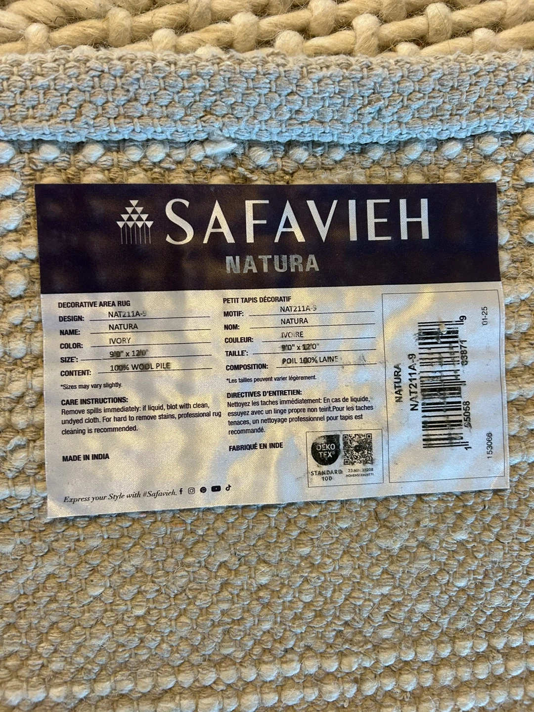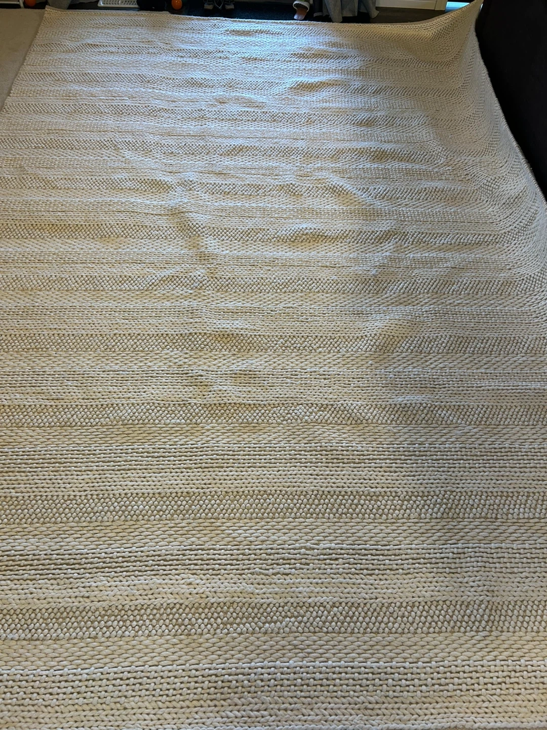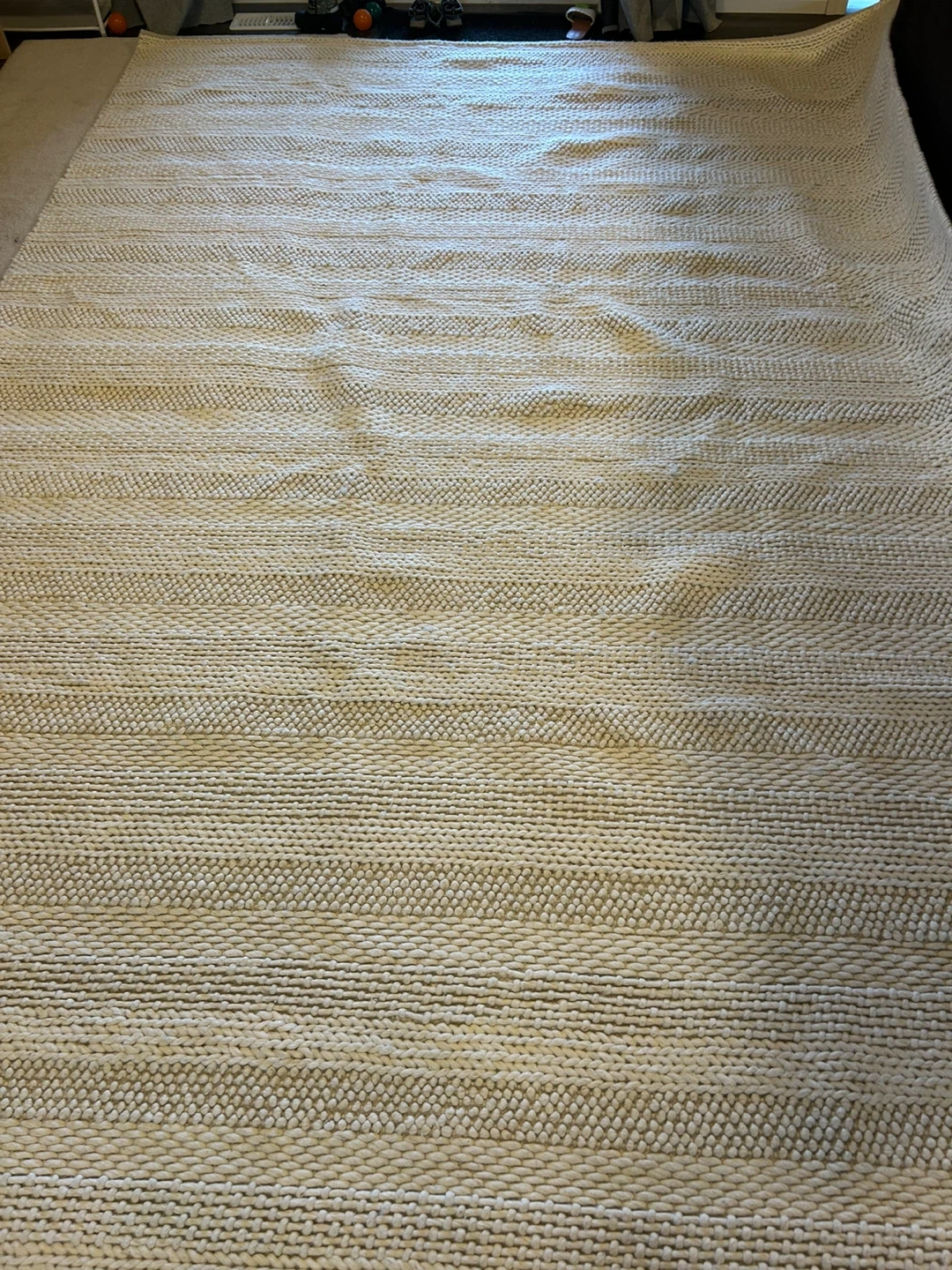 Selling a 9' x 12', Ivory, Handmade Boho Stripe Wool Area Rug. Woven pattern. It's made from a blend of natural fibres. The rug features a mix of braided and looped textures throughout its surface. If interested message.