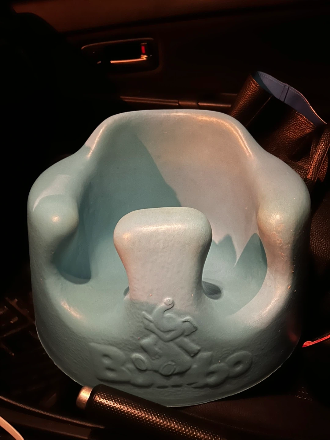 Bumbo baby seat in light blue. It's made of a soft, wipeable material. This seat helps support infants for supervised playtime. 🎀Bundle items for discounts when purchasing more then one item🎀