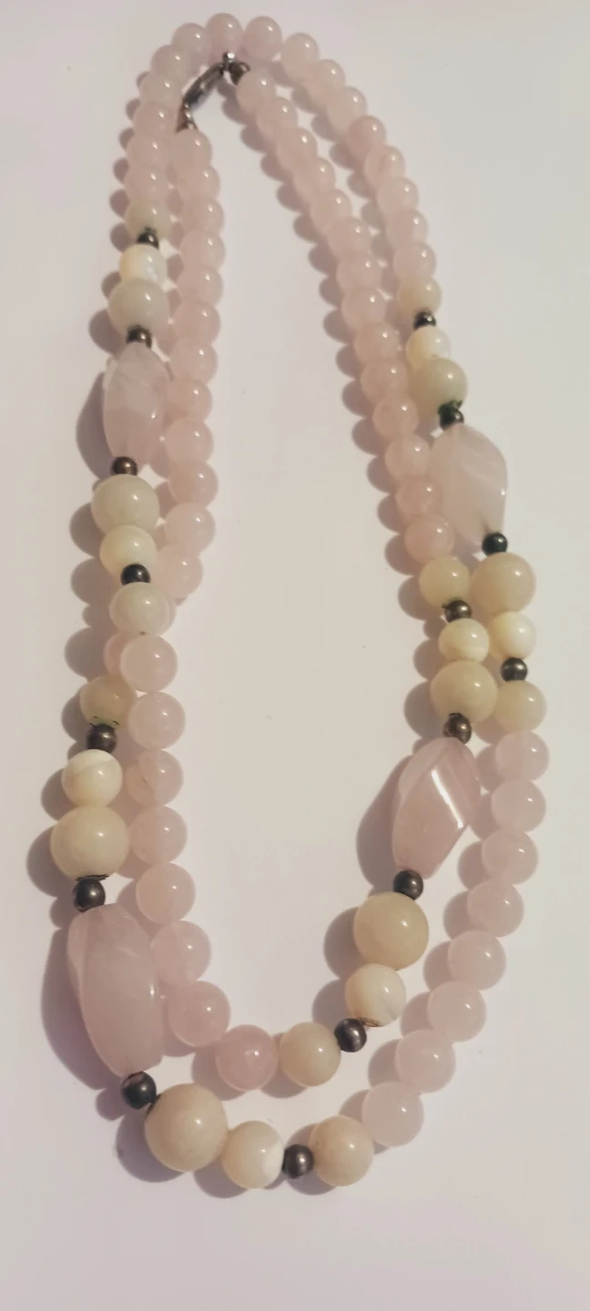 Genuine Rose Quartz & Mother of Pearl Beaded Necklace