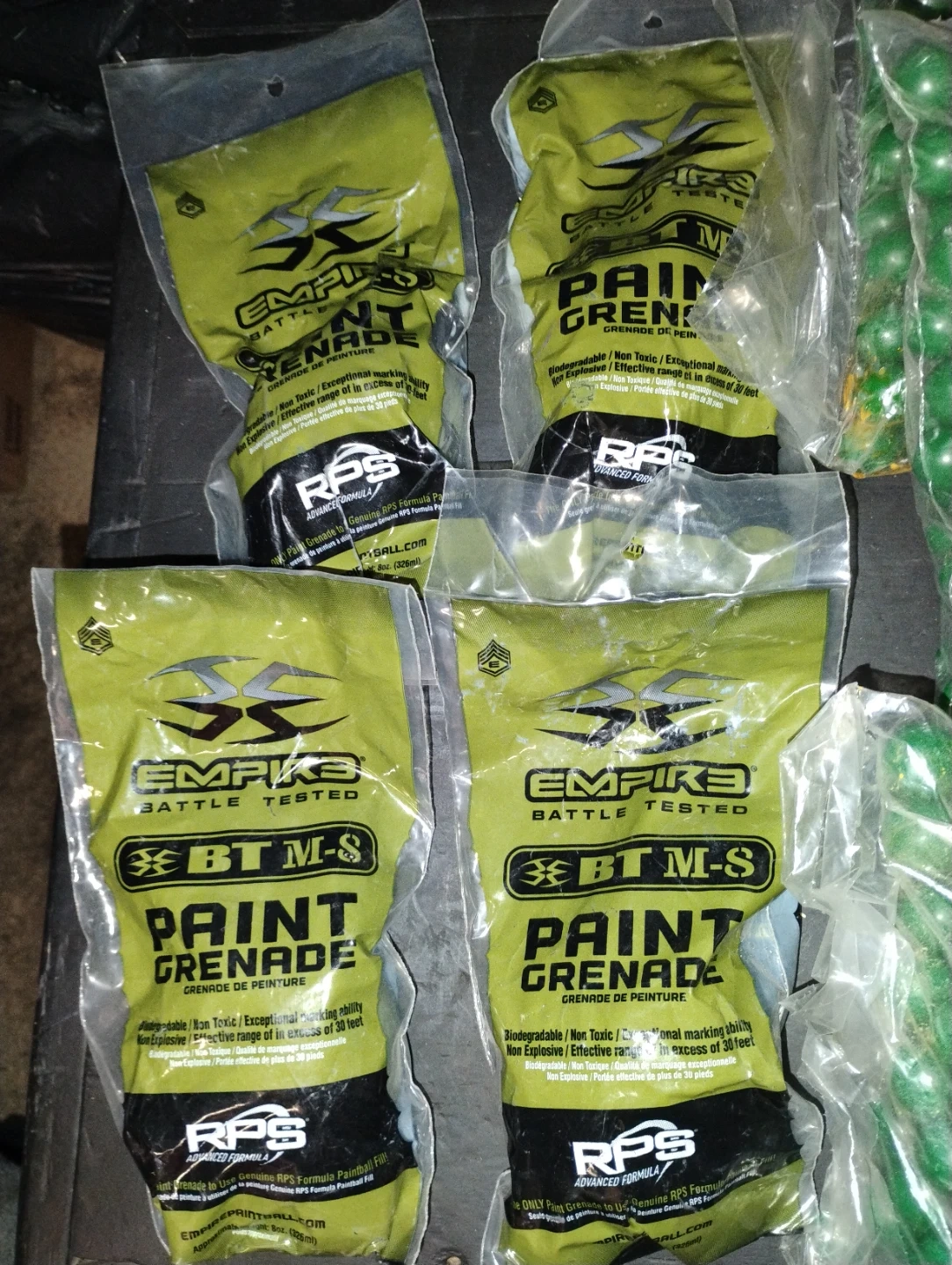 Empire Paintball BTM-8 Grenade paintballs. Biodegradable and non-toxic. Effective range of 30 feet. Comes with 500 rounds. Bio-paintball formula.