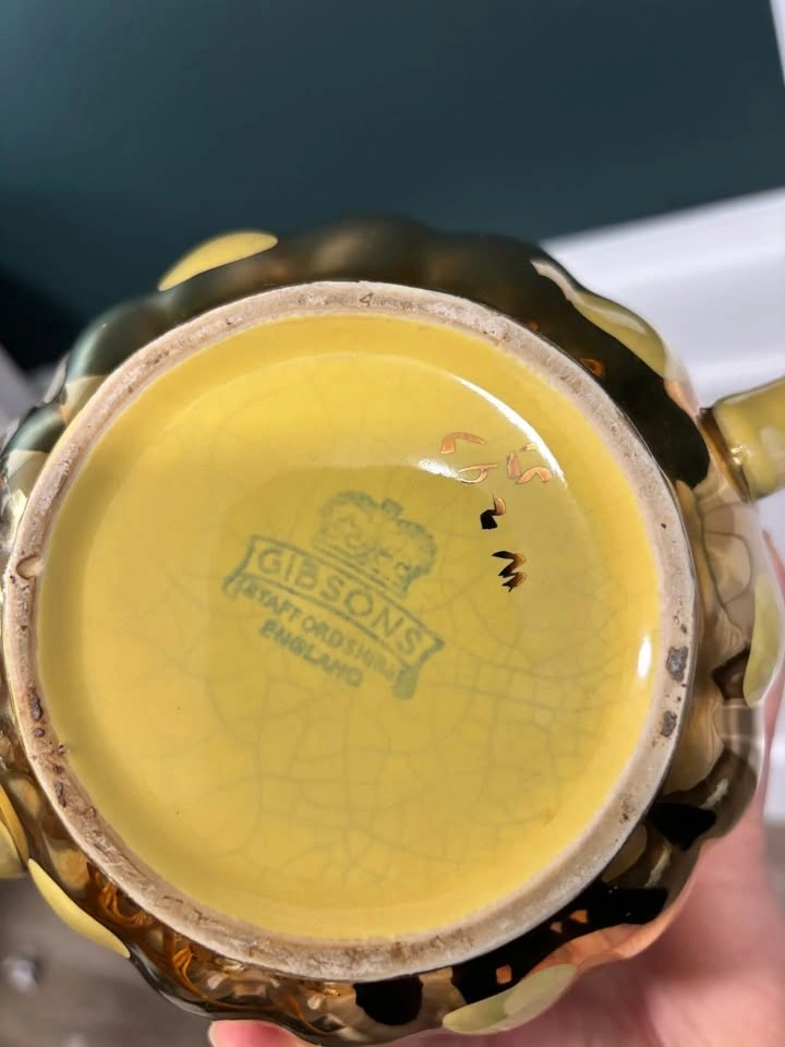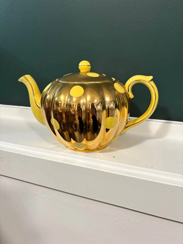 Gold with yellow polka dots Gibsons Staffordshire England teapot. Pick up available in Mt Lehman (Mon - Fri 7am-2:30pm), Walnut Grove (Mon - Fri 4pm-8pm), or Chilliwack (can be arranged). Thanks for looking and check out my other listings ⭐️