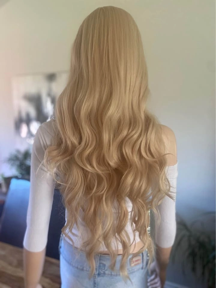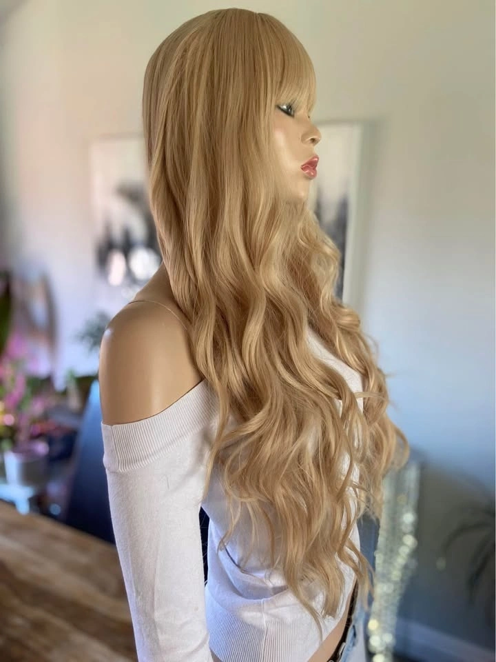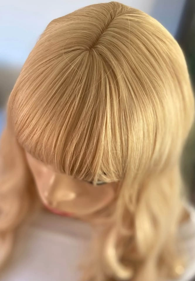 NWOT: 26” Long Wavy Solid Sleeping Beauty Barbie Blonde Synthetic Wig with Bangs (2295)