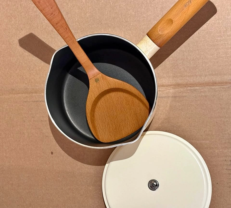 Aesthetic Ceramic Saucepan w/ Wooden Handle + Spatula