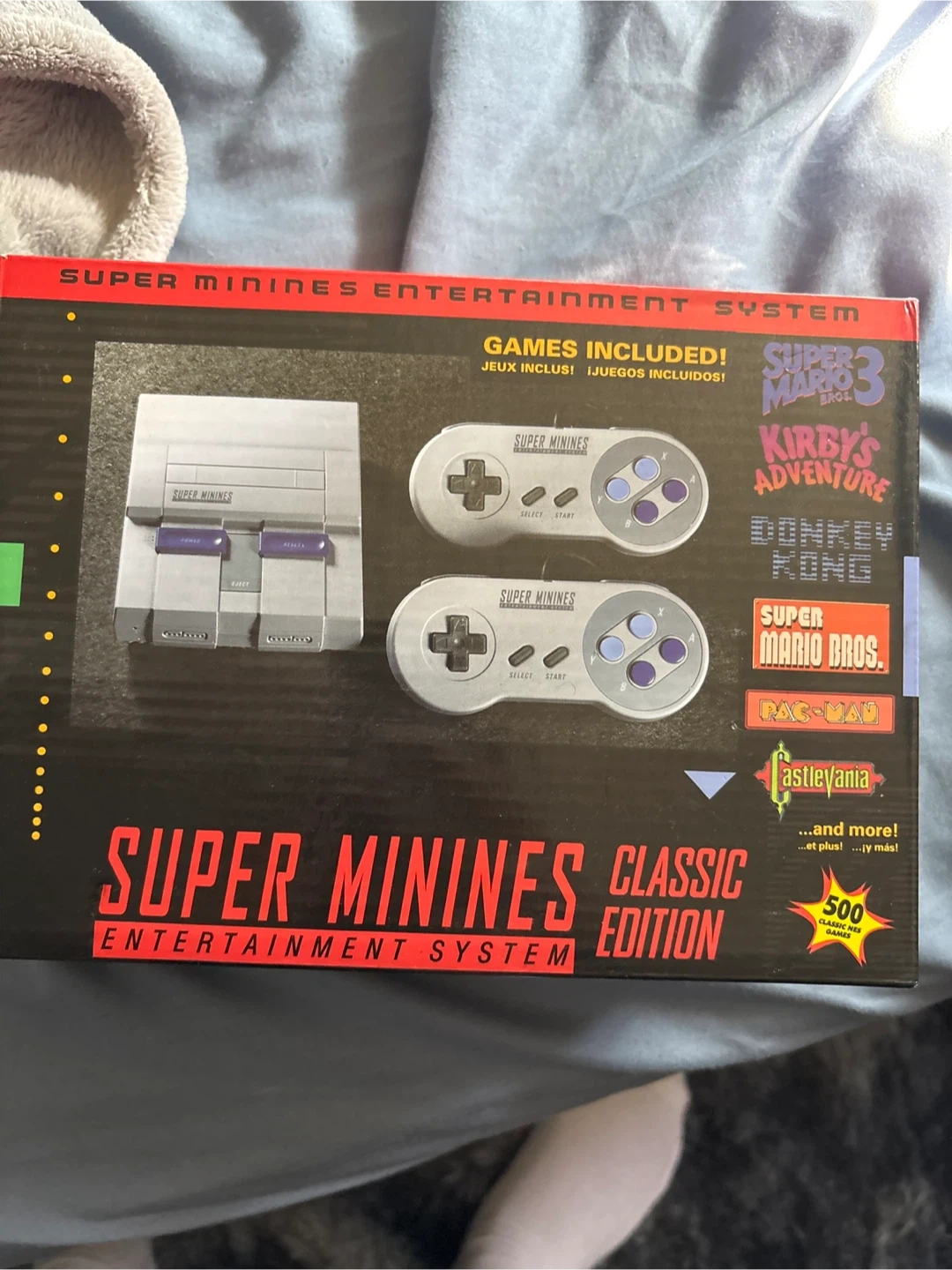 This Super Minines Classic Edition Entertainment System comes with 500 classic NES games. It includes two controllers for multiplayer fun! A great retro gaming console for any enthusiast.