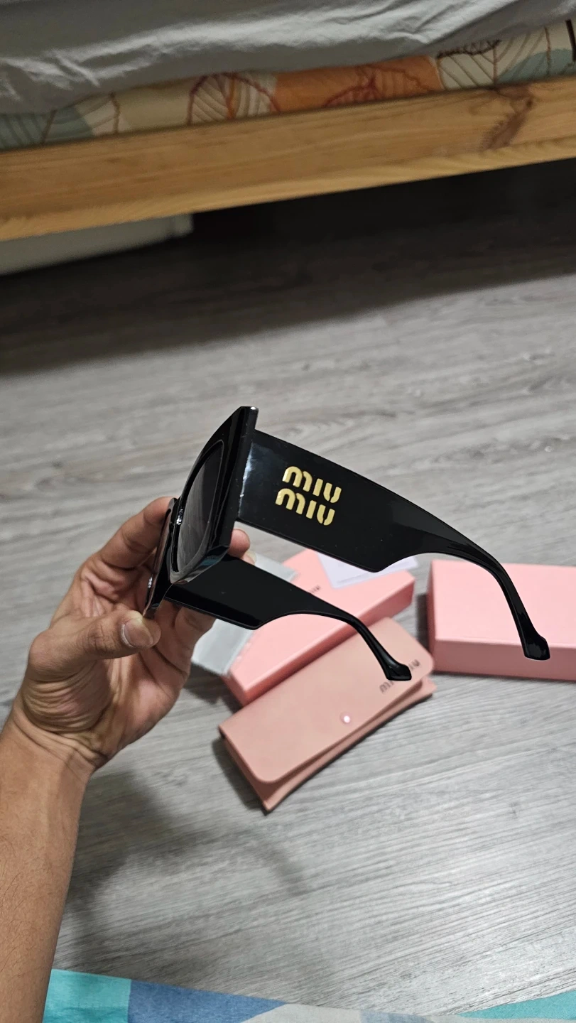 These Miu Miu sunglasses feature a stylish black rectangular frame.